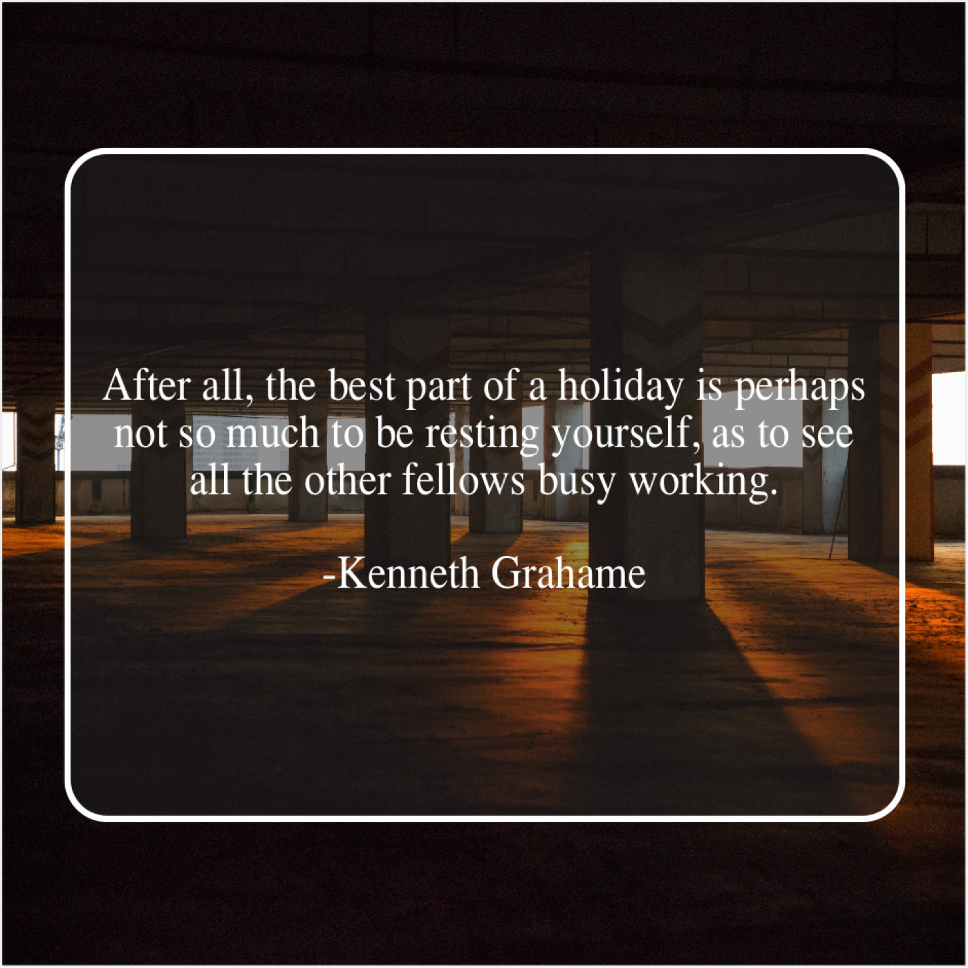 Kenneth Grahame Kenneth Grahame – After all, the best part… April 16, 2019 admin “After all, the best part of a holiday is perhaps not so much to be resting yourself, as to see all the other fellows busy working.”-Kenneth Grahame