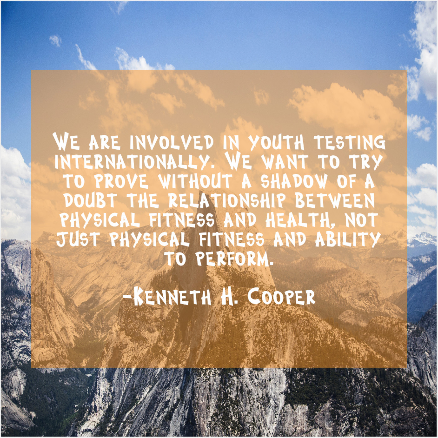 Kenneth H. Cooper Kenneth H. Cooper – We are involved in youth… January 1, 2019 admin “We are involved in youth testing internationally. We want to try to prove without a shadow of a doubt the relationship between physical fitness and health, not just physical fitness and ability to perform.”-Kenneth H. Cooper