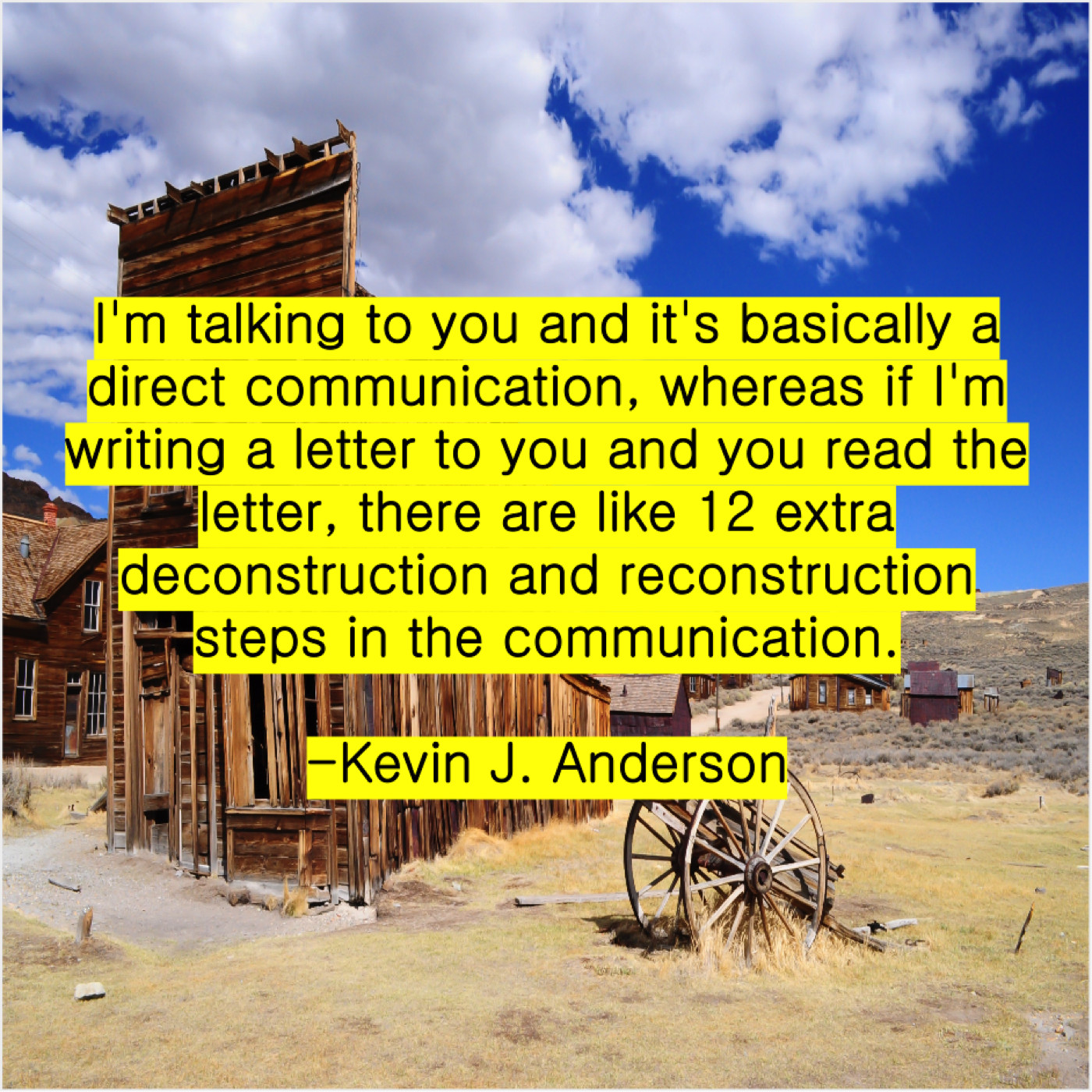 Kevin J. Anderson Kevin J. Anderson – I’m talking to you and… May 3, 2019 admin “I’m talking to you and it’s basically a direct communication, whereas if I’m writing a letter to you and you read the letter, there are like 12 extra deconstruction and reconstruction steps in the communication.”-Kevin J. Anderson