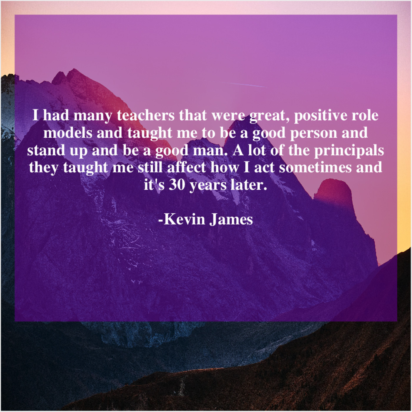Kevin James Kevin James – I had many teachers that… January 19, 2019 admin “I had many teachers that were great, positive role models and taught me to be a good person and stand up and be a good man. A lot of the principals they taught me still affect how I act sometimes and it’s 30 years later.”-Kevin James