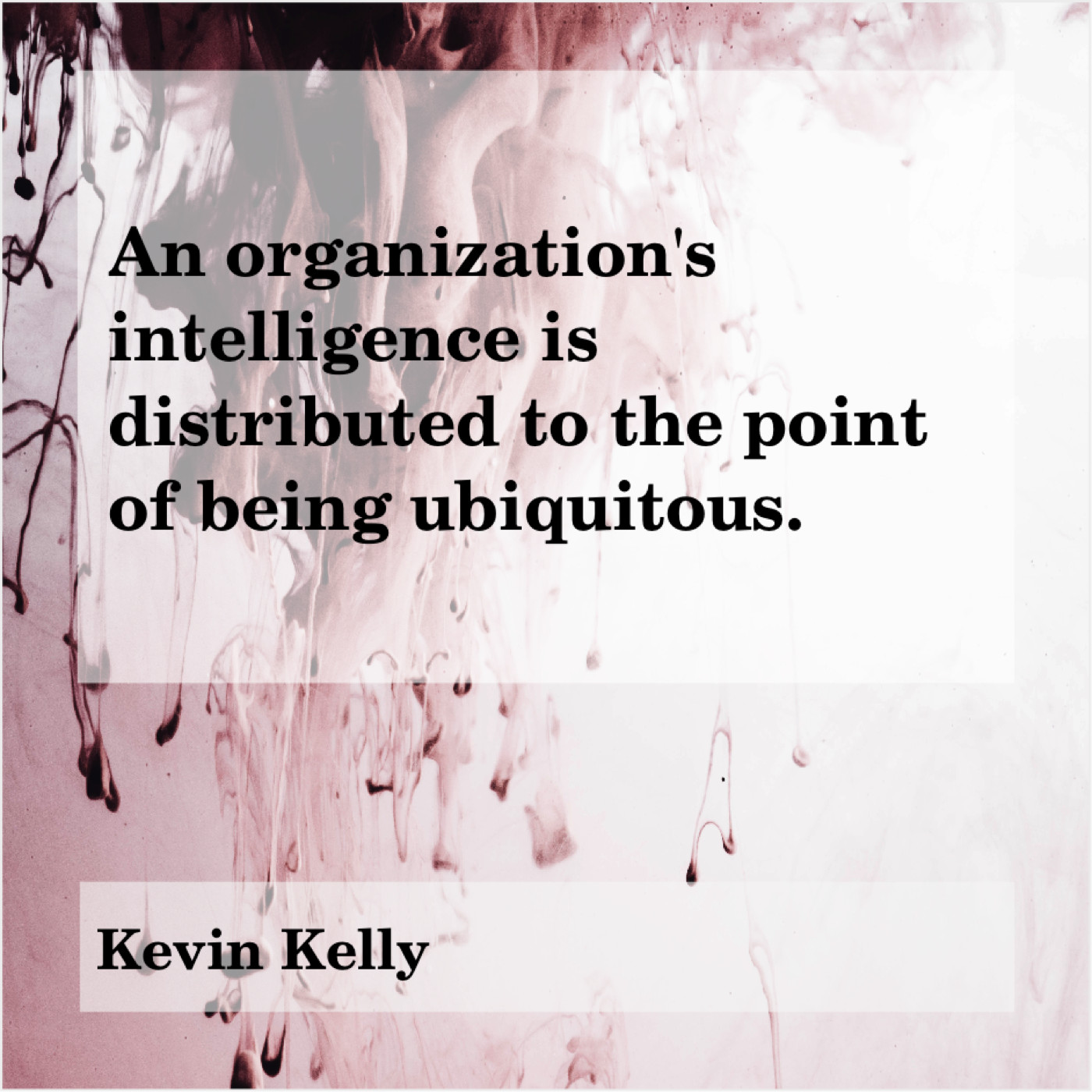 Kevin Kelly Kevin Kelly – An organization’s intelligence is distributed… July 13, 2019 admin “An organization’s intelligence is distributed to the point of being ubiquitous.”-Kevin Kelly