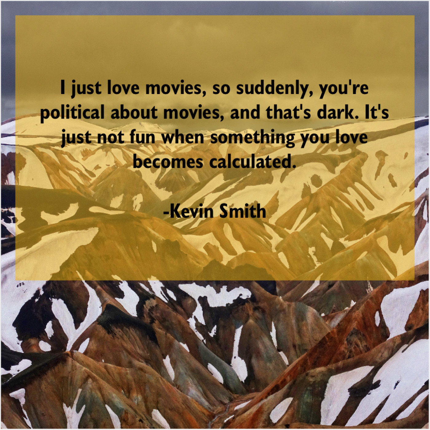 Kevin Smith Kevin Smith – I just love movies, so… January 25, 2019 admin “I just love movies, so suddenly, you’re political about movies, and that’s dark. It’s just not fun when something you love becomes calculated.”-Kevin Smith