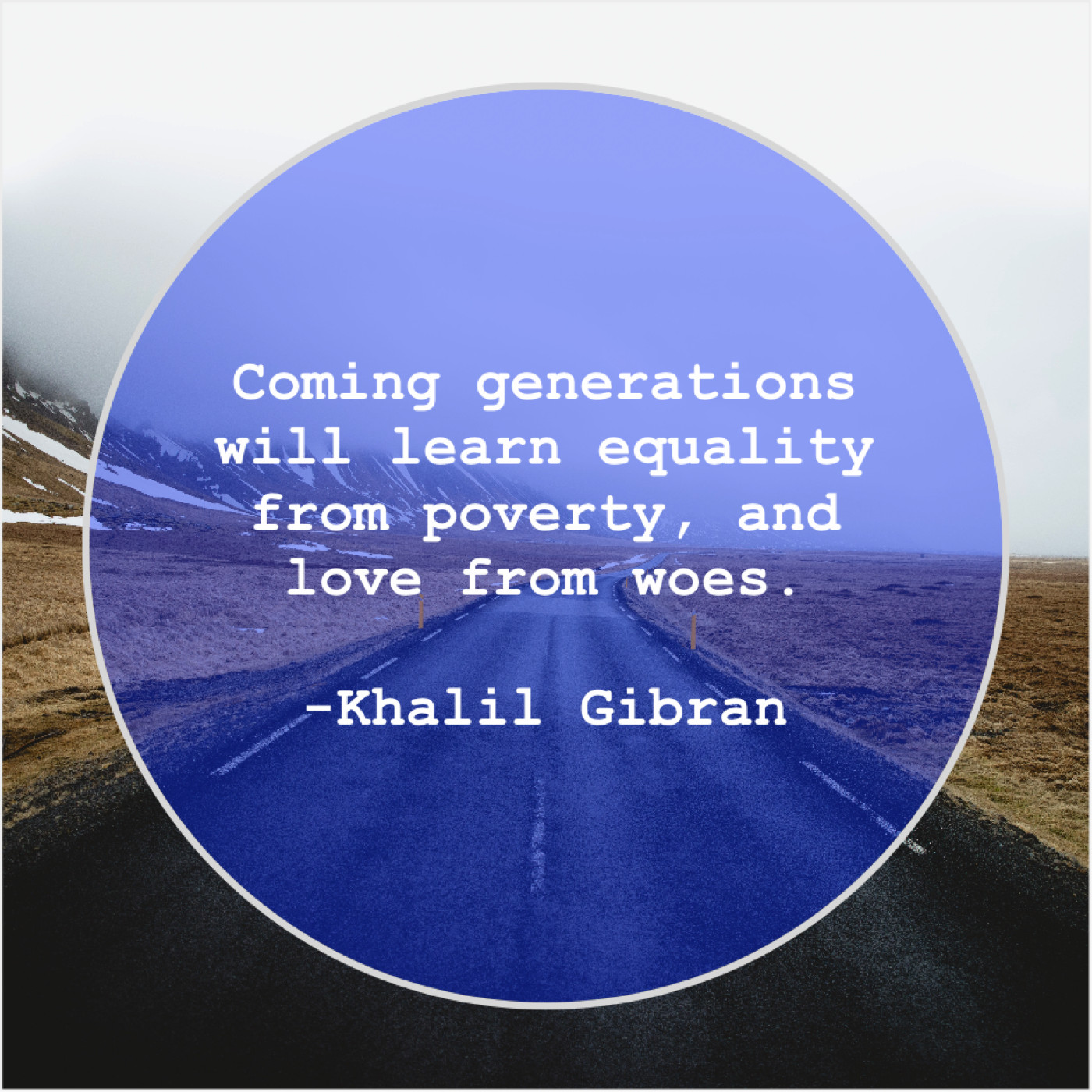 Khalil Gibran Khalil Gibran – Coming generations will learn equality… April 10, 2019 admin “Coming generations will learn equality from poverty, and love from woes.”-Khalil Gibran