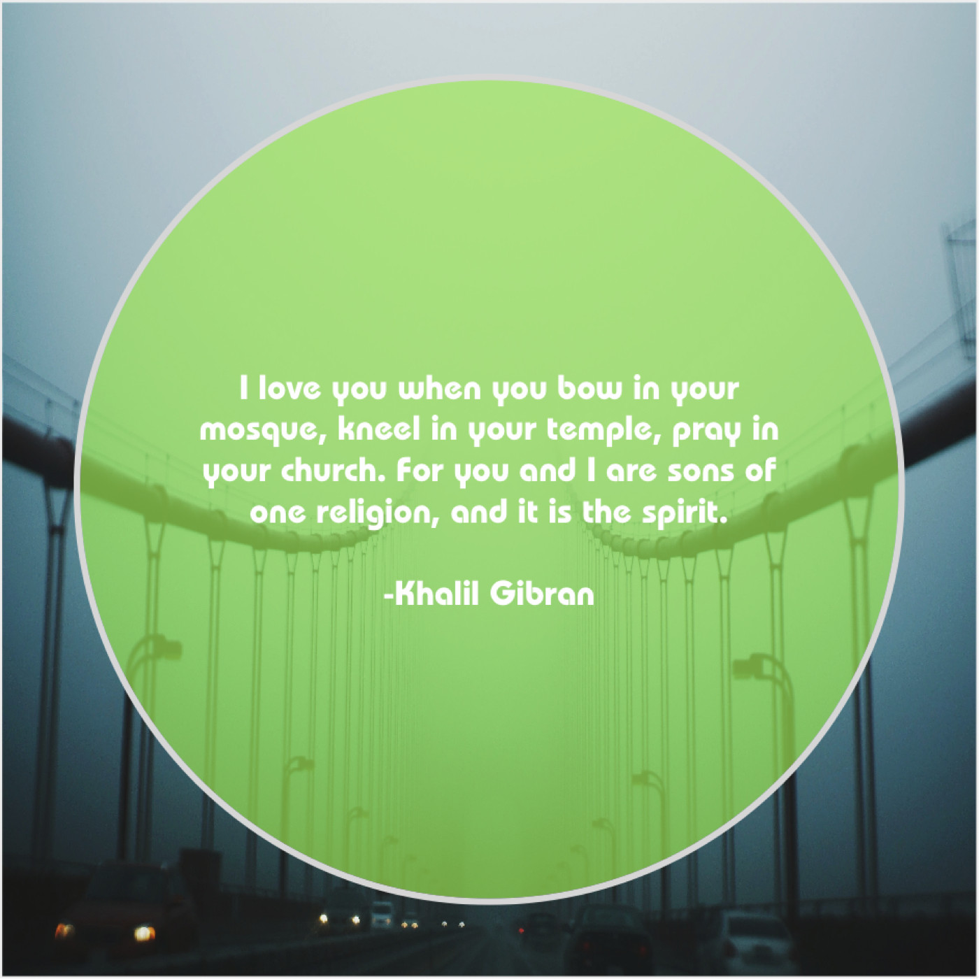 Khalil Gibran Khalil Gibran – I love you when you… November 25, 2018 admin “I love you when you bow in your mosque, kneel in your temple, pray in your church. For you and I are sons of one religion, and it is the spirit.”-Khalil Gibran