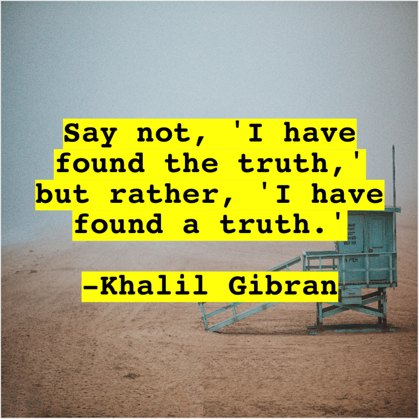 Khalil Gibran Khalil Gibran – Say not, ‘I have found… October 17, 2019 admin “Say not, ‘I have found the truth,’ but rather, ‘I have found a truth.'”-Khalil Gibran