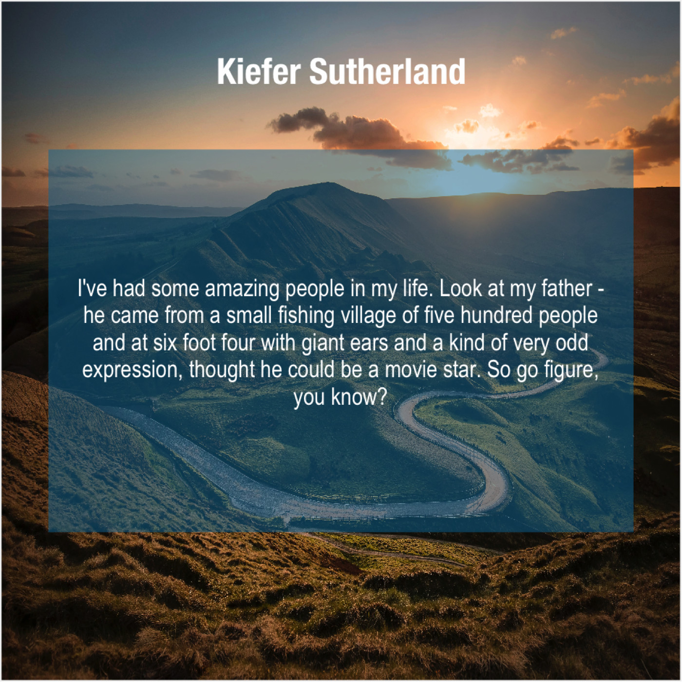 “I’ve had some amazing people in my life. Look at my father – he came from a small fishing village of five hundred people and at six foot four with giant ears and a kind of very odd expression, thought he could be a movie star. So go figure, you know?”