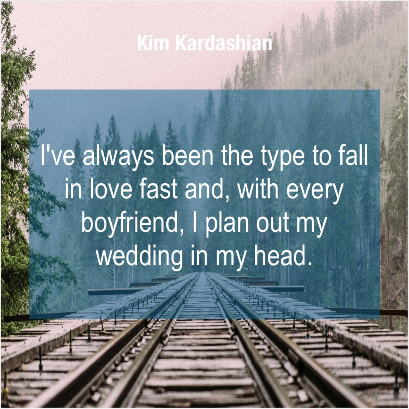Kim Kardashian Kim Kardashian – I’ve always been the type… January 29, 2019 admin “I’ve always been the type to fall in love fast and, with every boyfriend, I plan out my wedding in my head.”-Kim Kardashian