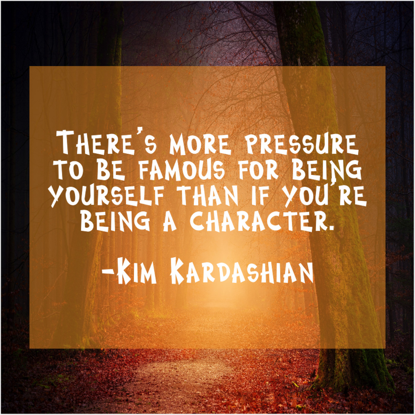Kim Kardashian Kim Kardashian – There’s more pressure to be… September 23, 2019 admin “There’s more pressure to be famous for being yourself than if you’re being a character.”-Kim Kardashian