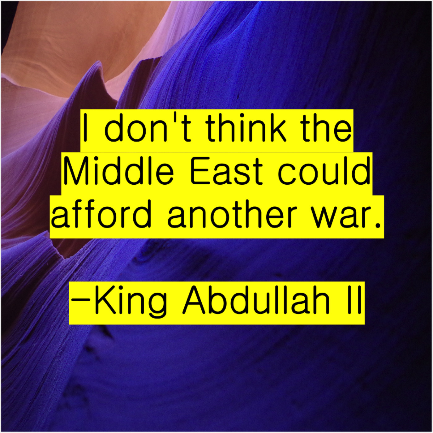 King Abdullah II King Abdullah II – I don’t think the Middle… May 26, 2019 admin “I don’t think the Middle East could afford another war.”-King Abdullah II