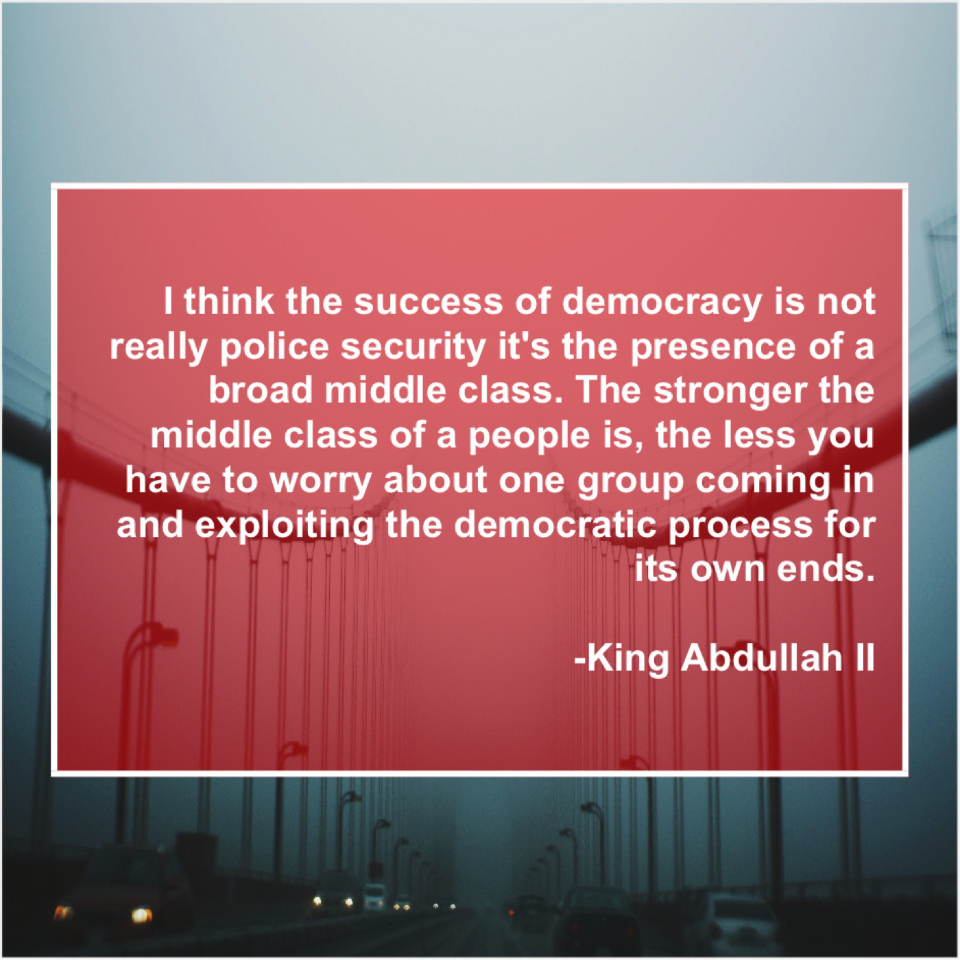 “I think the success of democracy is not really police security it’s the presence of a broad middle class. The stronger the middle class of a people is, the less you have to worry about one group coming in and exploiting the democratic process for its own ends.”