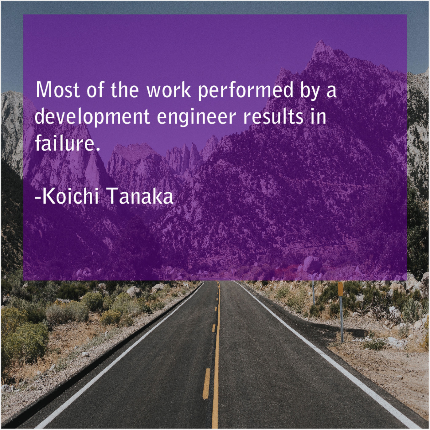 Koichi Tanaka Koichi Tanaka – Most of the work performed… November 23, 2018 admin “Most of the work performed by a development engineer results in failure.”-Koichi Tanaka