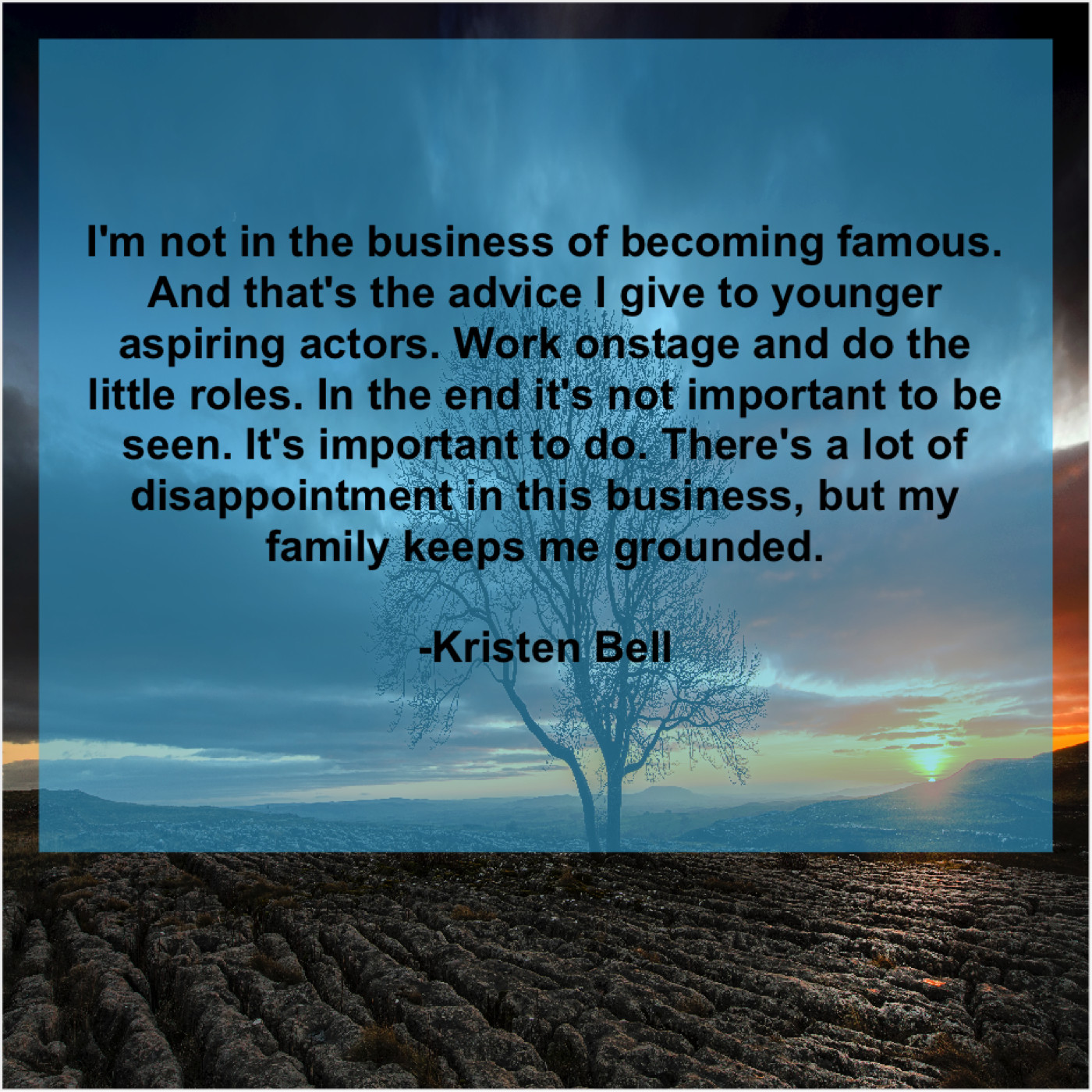 “I’m not in the business of becoming famous. And that’s the advice I give to younger aspiring actors. Work onstage and do the little roles. In the end it’s not important to be seen. It’s important to do. There’s a lot of disappointment in this business, but my family keeps me grounded.”