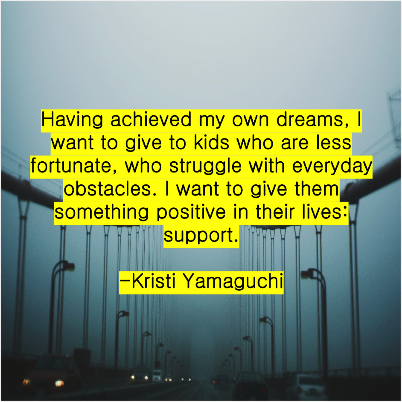 “Having achieved my own dreams, I want to give to kids who are less fortunate, who struggle with everyday obstacles. I want to give them something positive in their lives: support.”