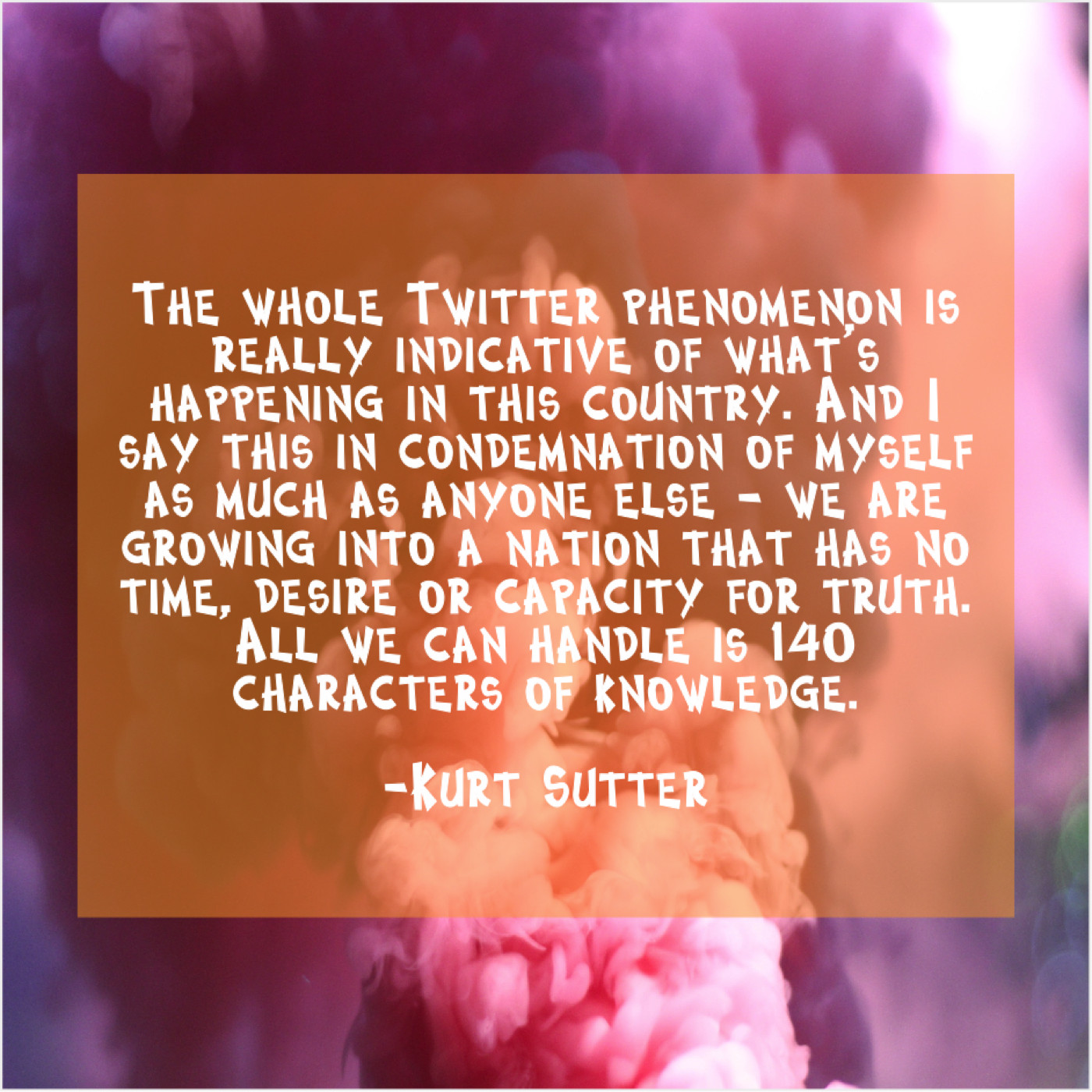 “The whole Twitter phenomenon is really indicative of what’s happening in this country. And I say this in condemnation of myself as much as anyone else – we are growing into a nation that has no time, desire or capacity for truth. All we can handle is 140 characters of knowledge.”