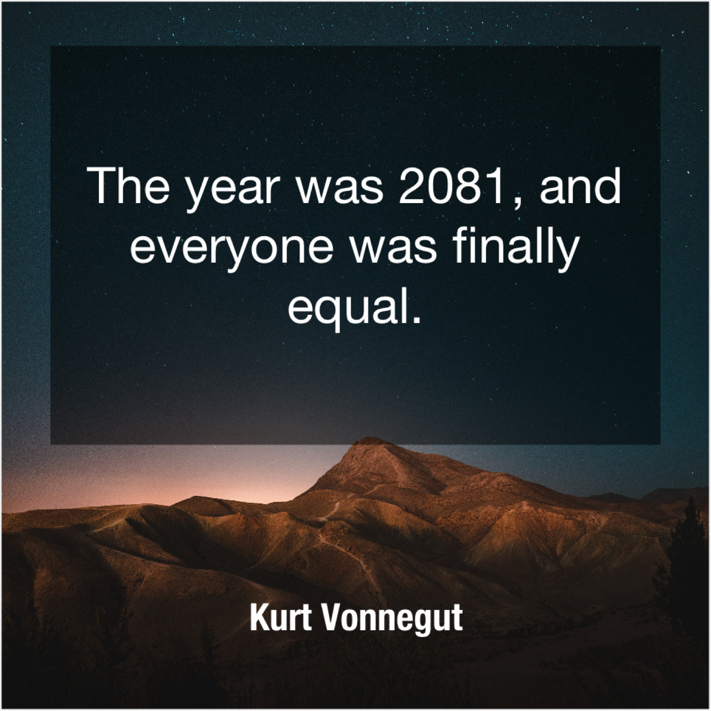 Kurt Vonnegut Kurt Vonnegut – The year was 2081, and… November 13, 2018 admin “The year was 2081, and everyone was finally equal.”-Kurt Vonnegut