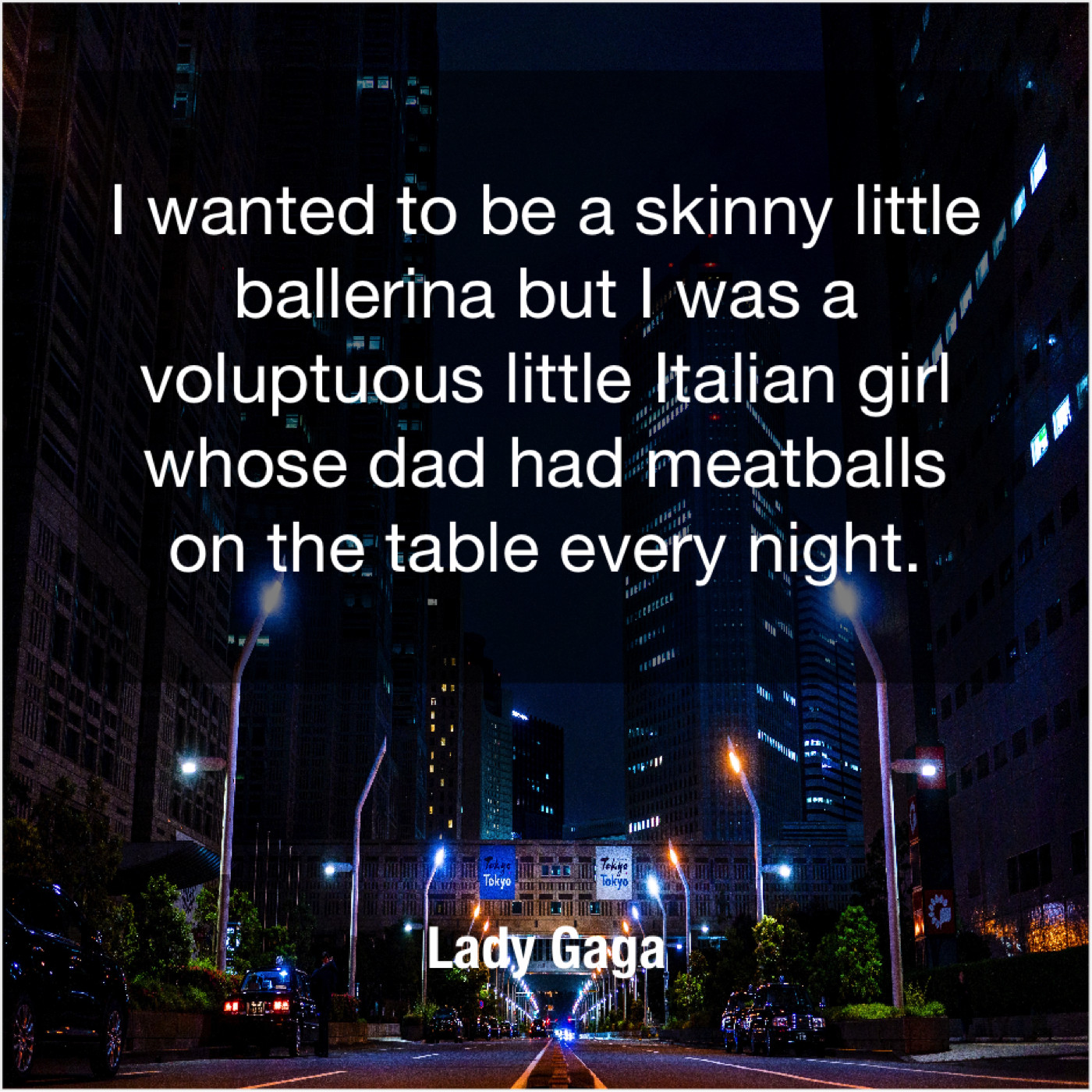 Lady Gaga Lady Gaga – I wanted to be a… May 29, 2019 admin “I wanted to be a skinny little ballerina but I was a voluptuous little Italian girl whose dad had meatballs on the table every night.”-Lady Gaga