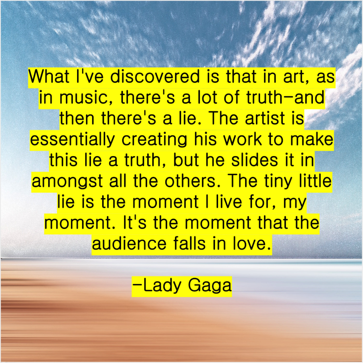 “What I’ve discovered is that in art, as in music, there’s a lot of truth-and then there’s a lie. The artist is essentially creating his work to make this lie a truth, but he slides it in amongst all the others. The tiny little lie is the moment I live for, my moment. It’s the moment that the audience falls in love.”