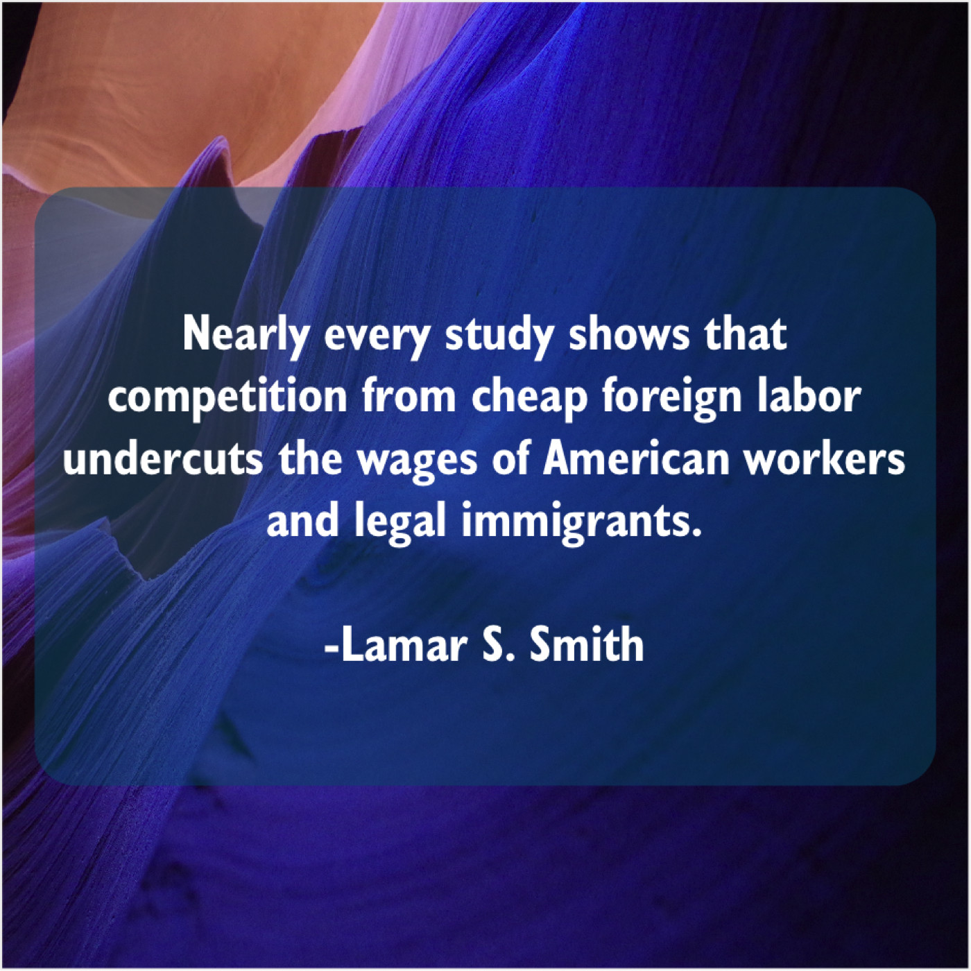 Lamar S. Smith Lamar S. Smith – Nearly every study shows that… December 2, 2018 admin “Nearly every study shows that competition from cheap foreign labor undercuts the wages of American workers and legal immigrants.”-Lamar S. Smith