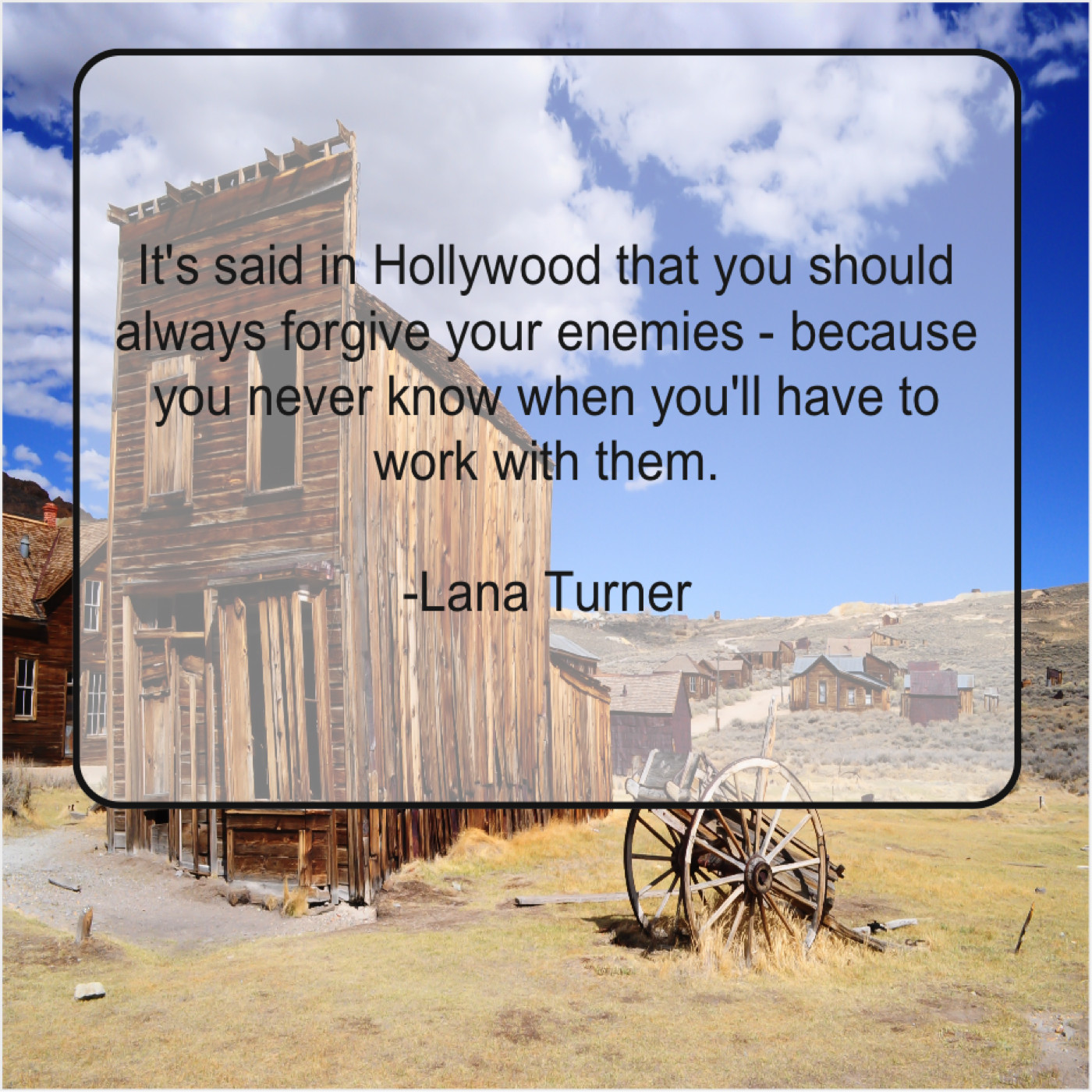 Lana Turner Lana Turner – It’s said in Hollywood that… April 4, 2019 admin “It’s said in Hollywood that you should always forgive your enemies – because you never know when you’ll have to work with them.”-Lana Turner