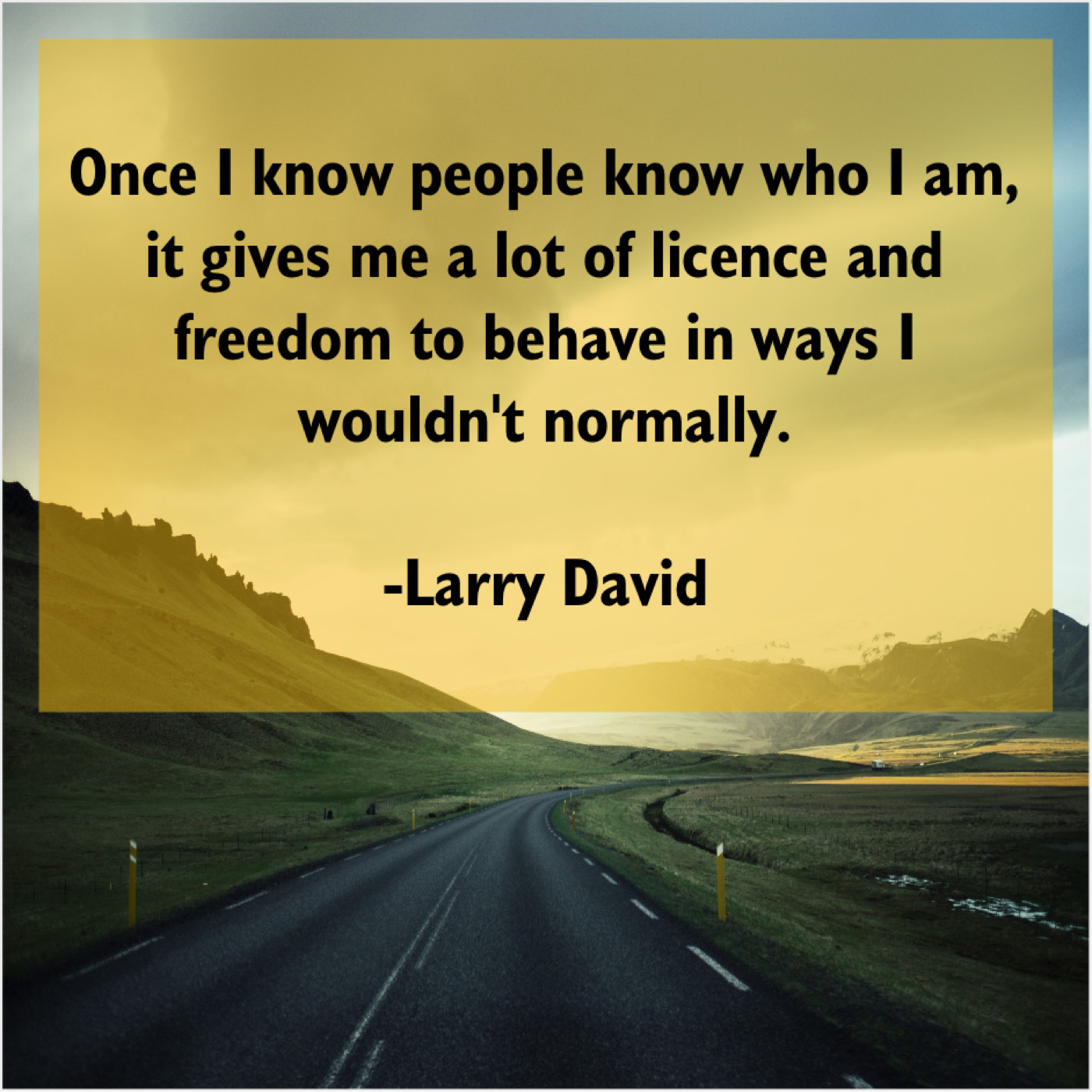 Larry David Larry David – Once I know people know… August 18, 2019 admin “Once I know people know who I am, it gives me a lot of licence and freedom to behave in ways I wouldn’t normally.”-Larry David