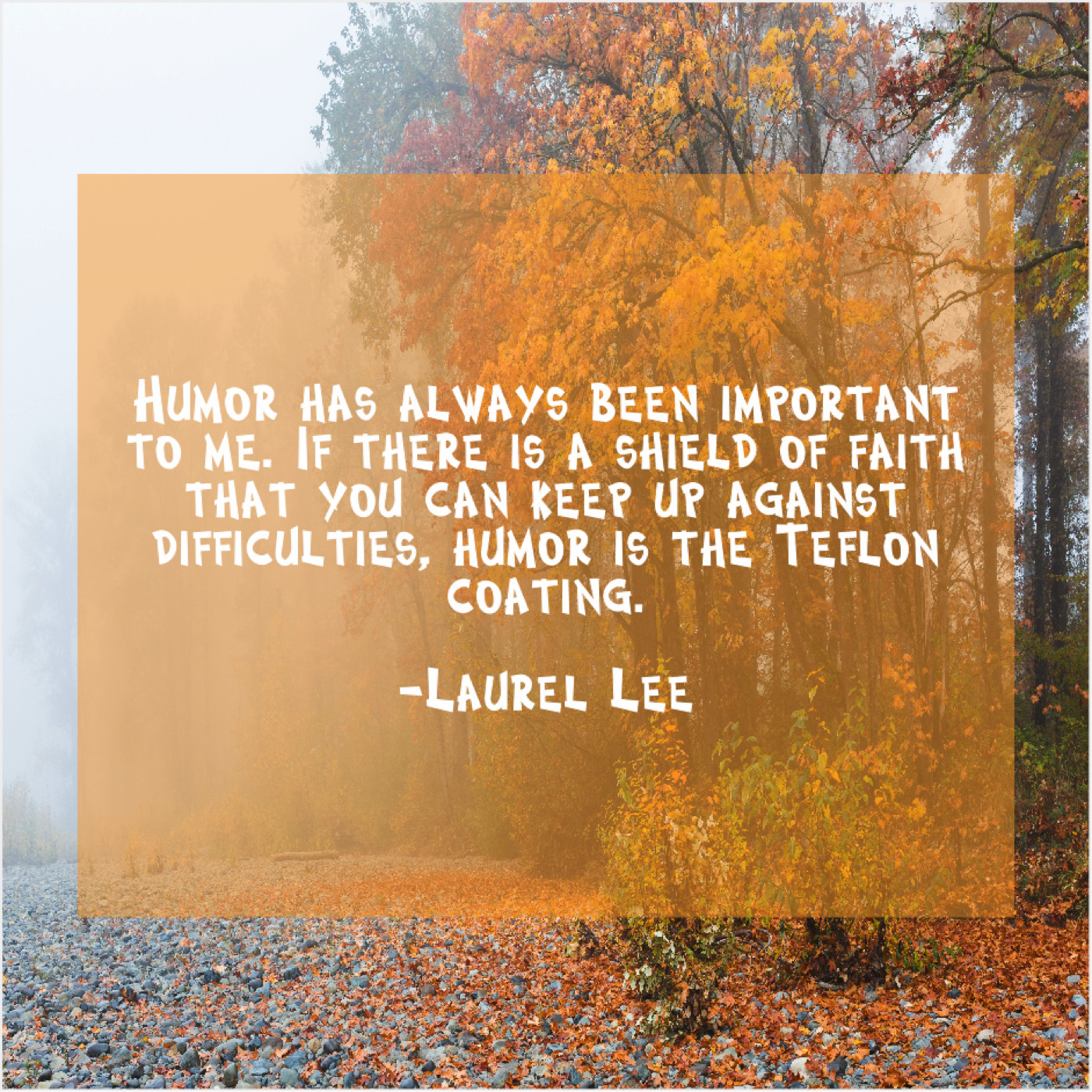 Laurel Lee Laurel Lee – Humor has always been important… May 22, 2019 admin “Humor has always been important to me. If there is a shield of faith that you can keep up against difficulties, humor is the Teflon coating.”-Laurel Lee