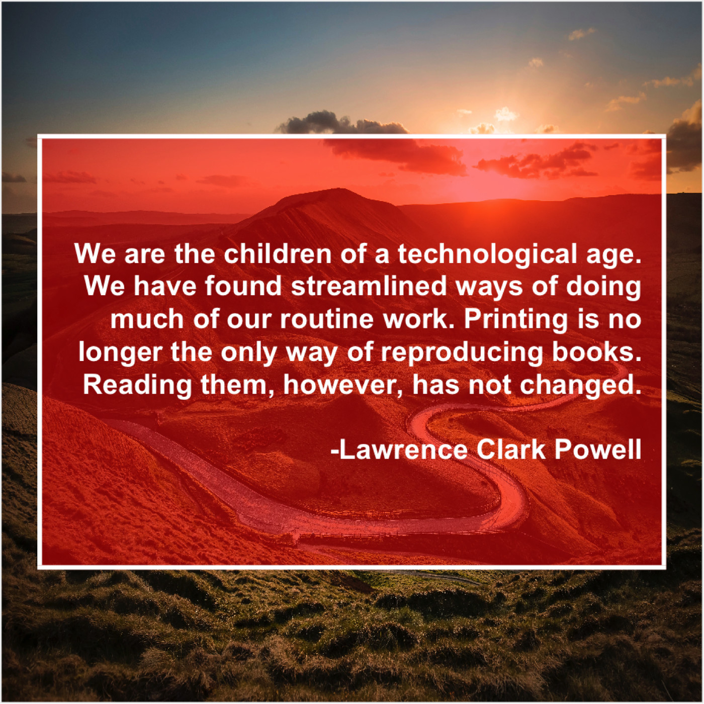 Lawrence Clark Powell Lawrence Clark Powell – We are the children of… June 8, 2019 admin “We are the children of a technological age. We have found streamlined ways of doing much of our routine work. Printing is no longer the only way of reproducing books. Reading them, however, has not changed.”-Lawrence Clark Powell