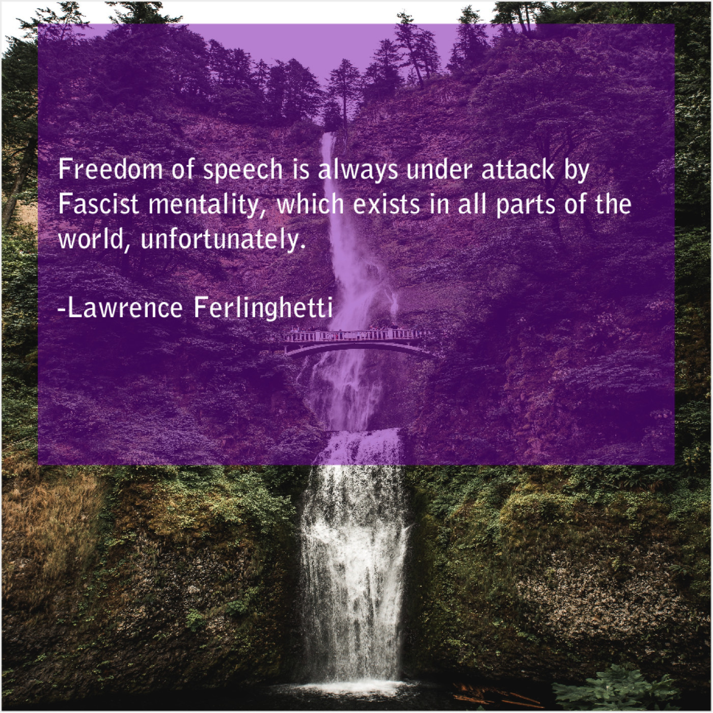 Lawrence Ferlinghetti Lawrence Ferlinghetti – Freedom of speech is always… April 21, 2019 admin “Freedom of speech is always under attack by Fascist mentality, which exists in all parts of the world, unfortunately.”-Lawrence Ferlinghetti