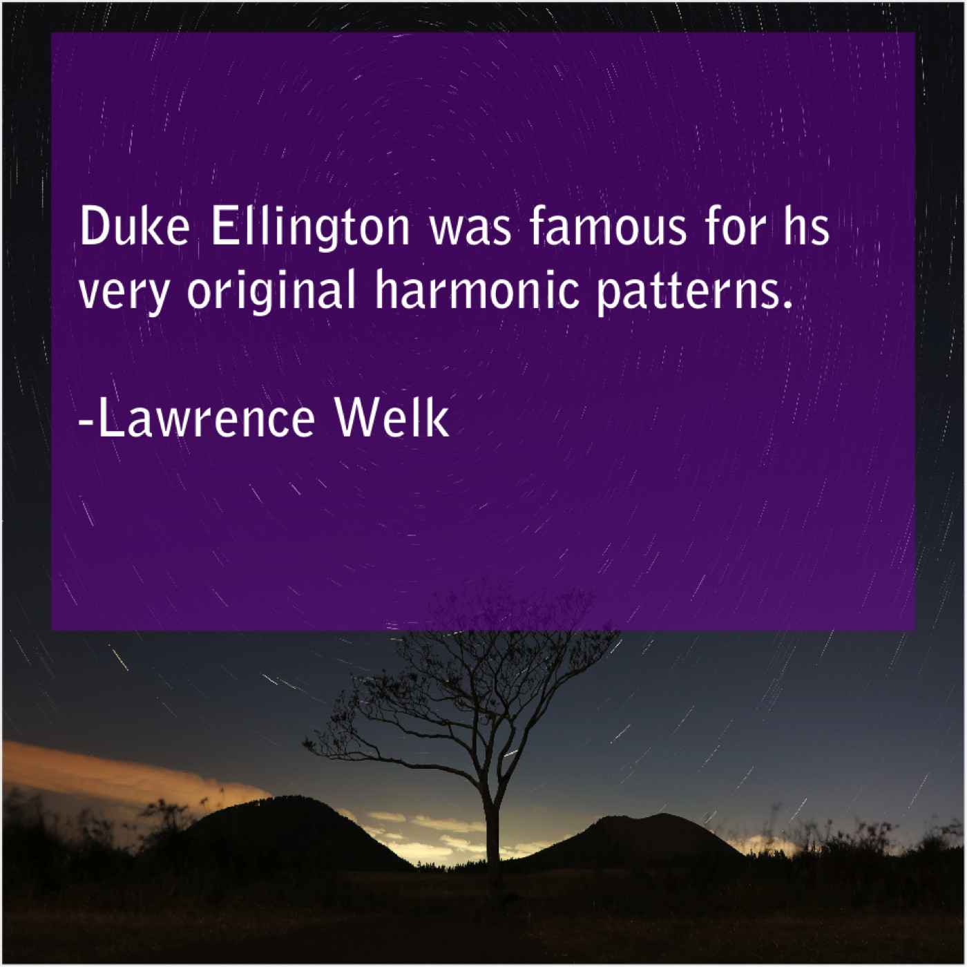 Lawrence Welk Lawrence Welk – Duke Ellington was famous for… July 11, 2019 admin “Duke Ellington was famous for hs very original harmonic patterns.”-Lawrence Welk