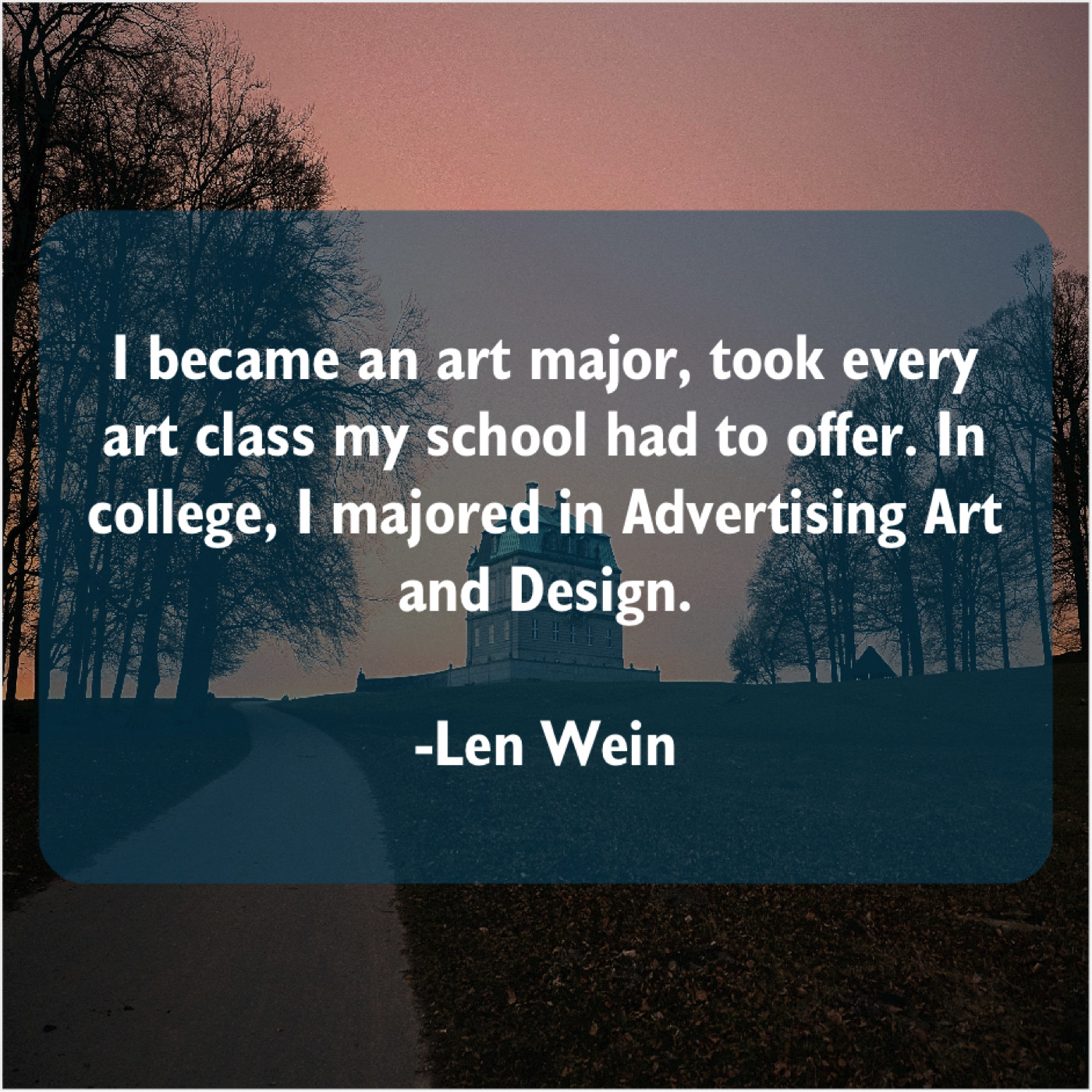 Len Wein Len Wein – I became an art major… December 16, 2018 admin “I became an art major, took every art class my school had to offer. In college, I majored in Advertising Art and Design.”-Len Wein