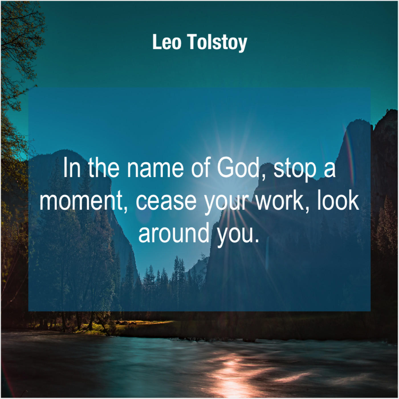 Leo Tolstoy Leo Tolstoy – In the name of God… January 13, 2019 admin “In the name of God, stop a moment, cease your work, look around you.”-Leo Tolstoy