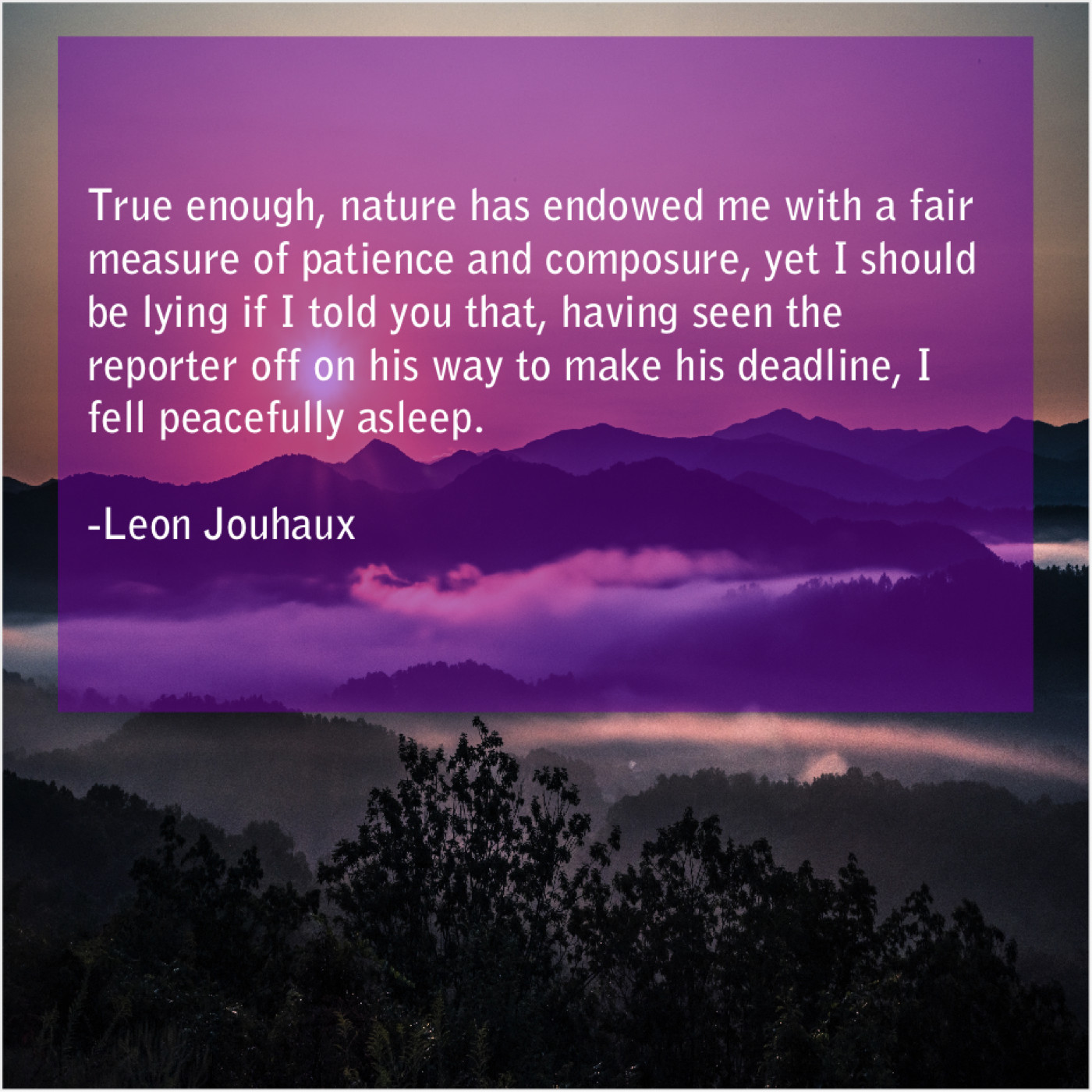 Leon Jouhaux Leon Jouhaux – True enough, nature has endowed… October 29, 2018 admin “True enough, nature has endowed me with a fair measure of patience and composure, yet I should be lying if I told you that, having seen the reporter off on his way to make his deadline, I fell peacefully asleep.”-Leon Jouhaux