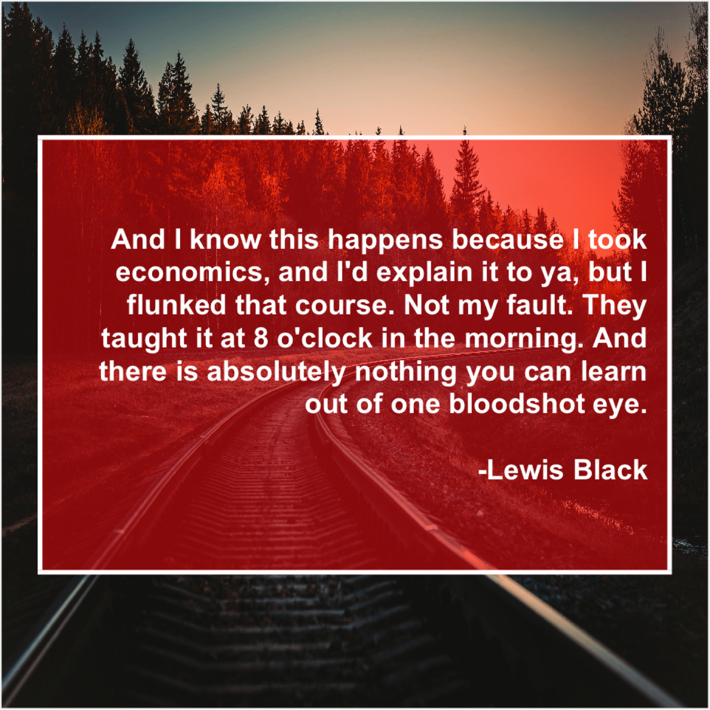 Lewis Black Lewis Black – And I know this happens… January 21, 2019 admin “And I know this happens because I took economics, and I’d explain it to ya, but I flunked that course. Not my fault. They taught it at 8 o’clock in the morning. And there is absolutely nothing you can learn out of one bloodshot eye.”-Lewis Black