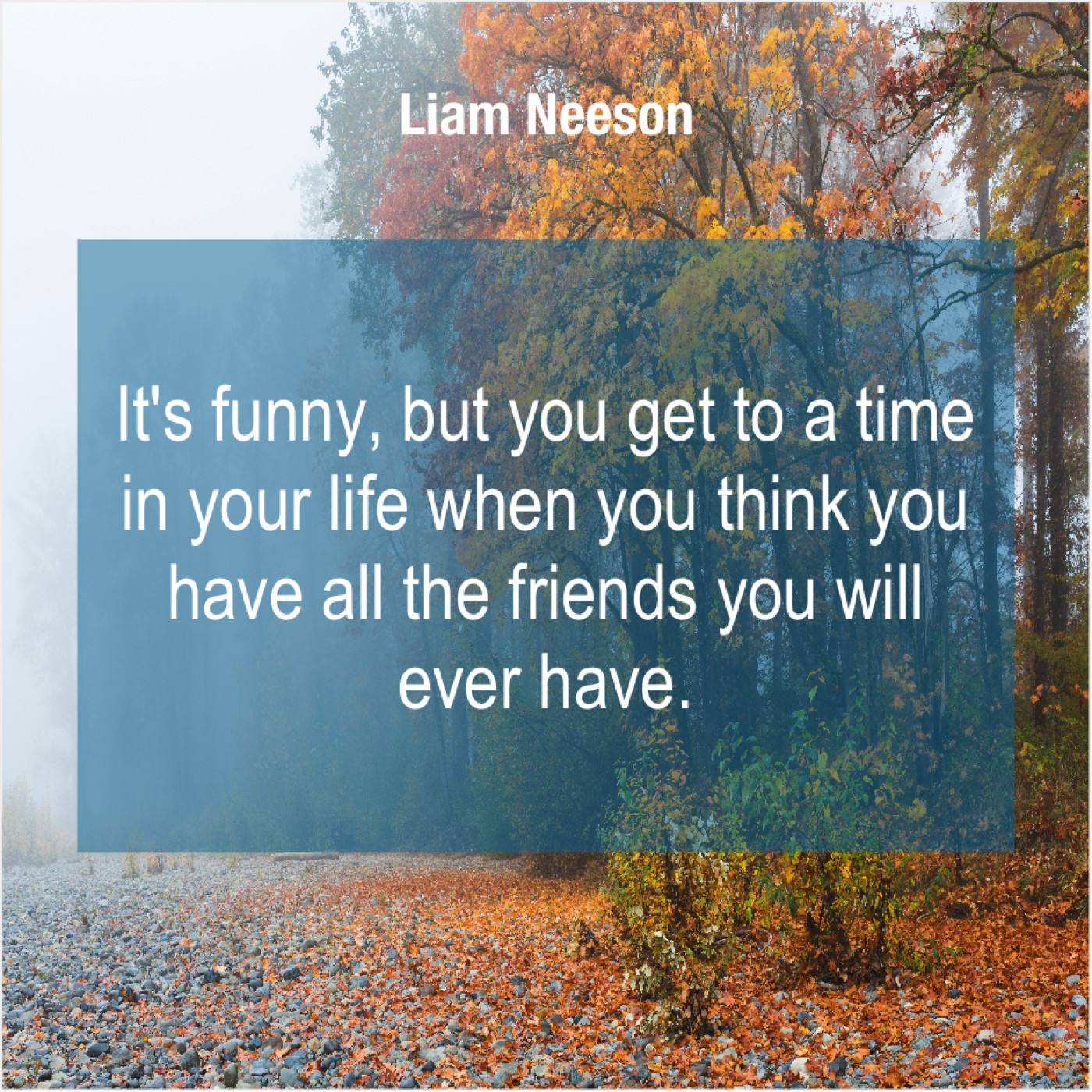 Liam Neeson Liam Neeson – It’s funny, but you get… March 6, 2019 admin “It’s funny, but you get to a time in your life when you think you have all the friends you will ever have.”-Liam Neeson
