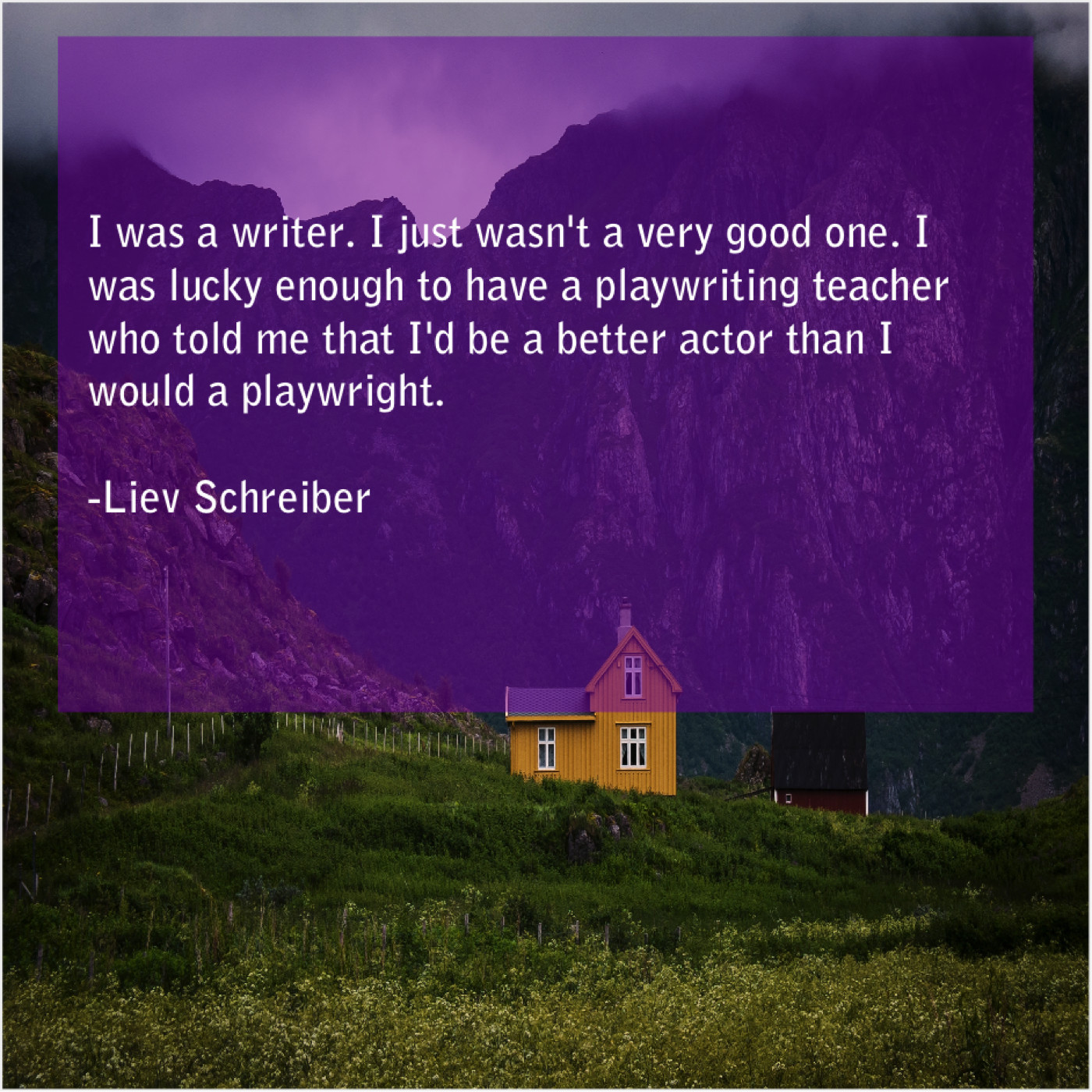 Liev Schreiber Liev Schreiber – I was a writer. I… January 29, 2019 admin “I was a writer. I just wasn’t a very good one. I was lucky enough to have a playwriting teacher who told me that I’d be a better actor than I would a playwright.”-Liev Schreiber