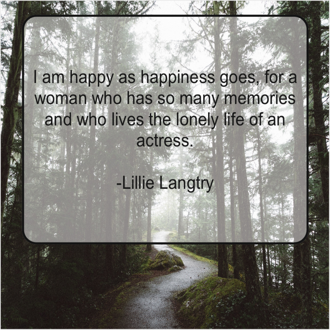 Lillie Langtry Lillie Langtry – I am happy as happiness… October 11, 2019 admin “I am happy as happiness goes, for a woman who has so many memories and who lives the lonely life of an actress.”-Lillie Langtry