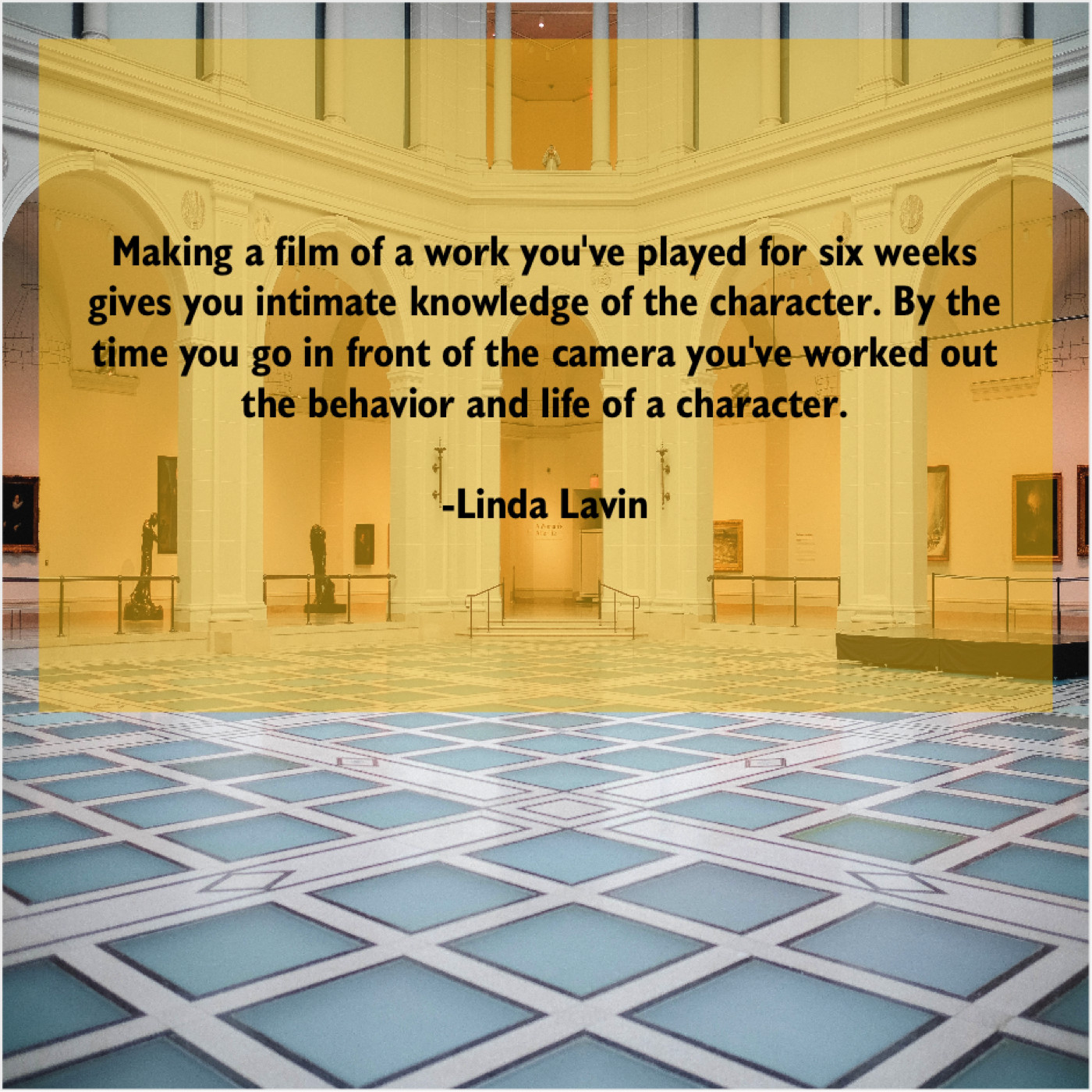 Linda Lavin Linda Lavin – Making a film of a… January 26, 2019 admin “Making a film of a work you’ve played for six weeks gives you intimate knowledge of the character. By the time you go in front of the camera you’ve worked out the behavior and life of a character.”-Linda Lavin