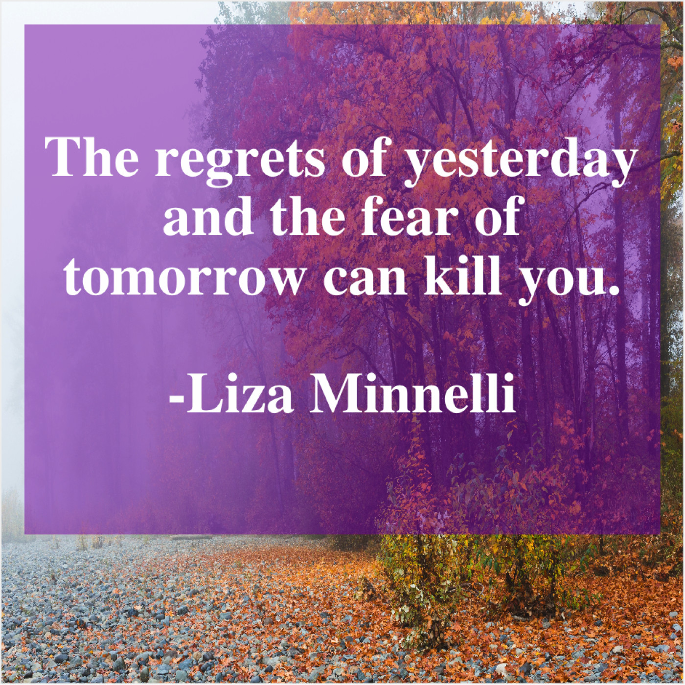 “The regrets of yesterday and the fear of tomorrow can kill you.”