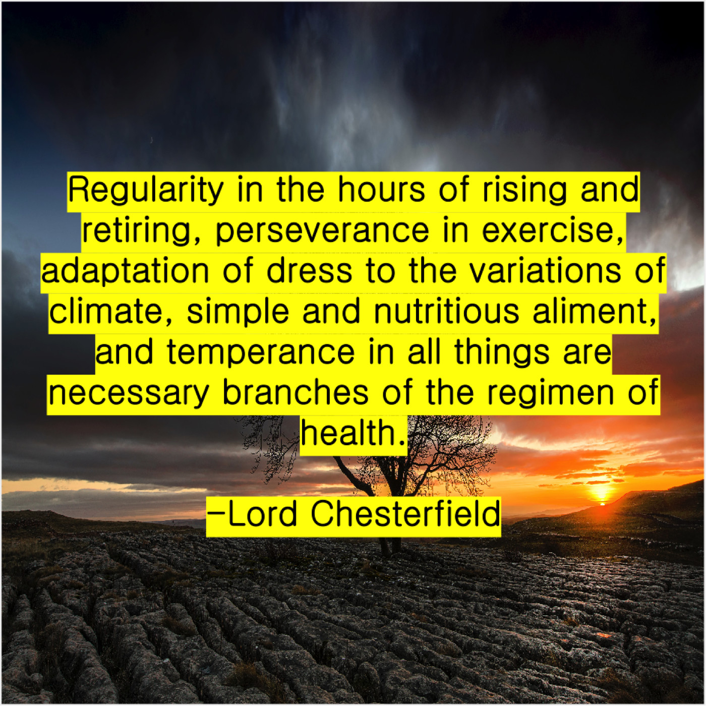 “Regularity in the hours of rising and retiring, perseverance in exercise, adaptation of dress to the variations of climate, simple and nutritious aliment, and temperance in all things are necessary branches of the regimen of health.”