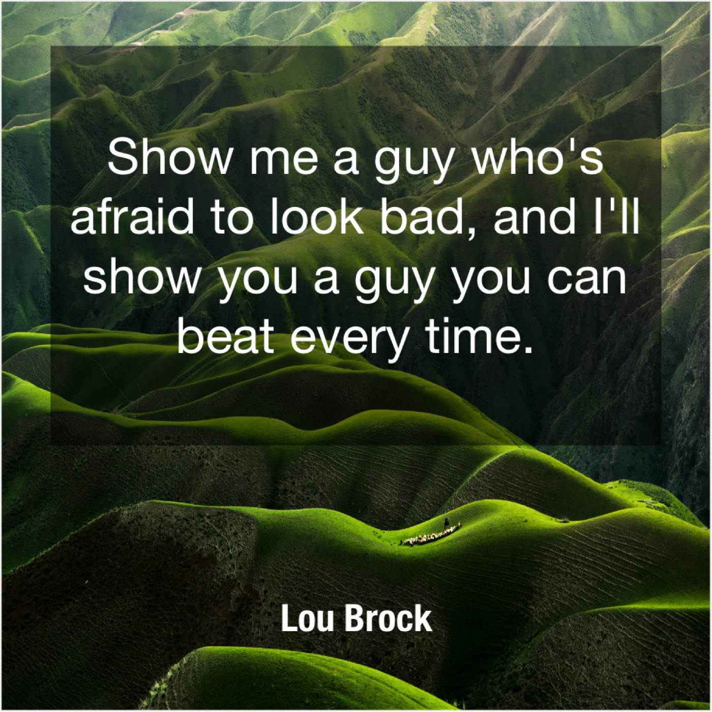 Lou Brock Lou Brock – Show me a guy who’s… May 6, 2019 admin “Show me a guy who’s afraid to look bad, and I’ll show you a guy you can beat every time.”-Lou Brock