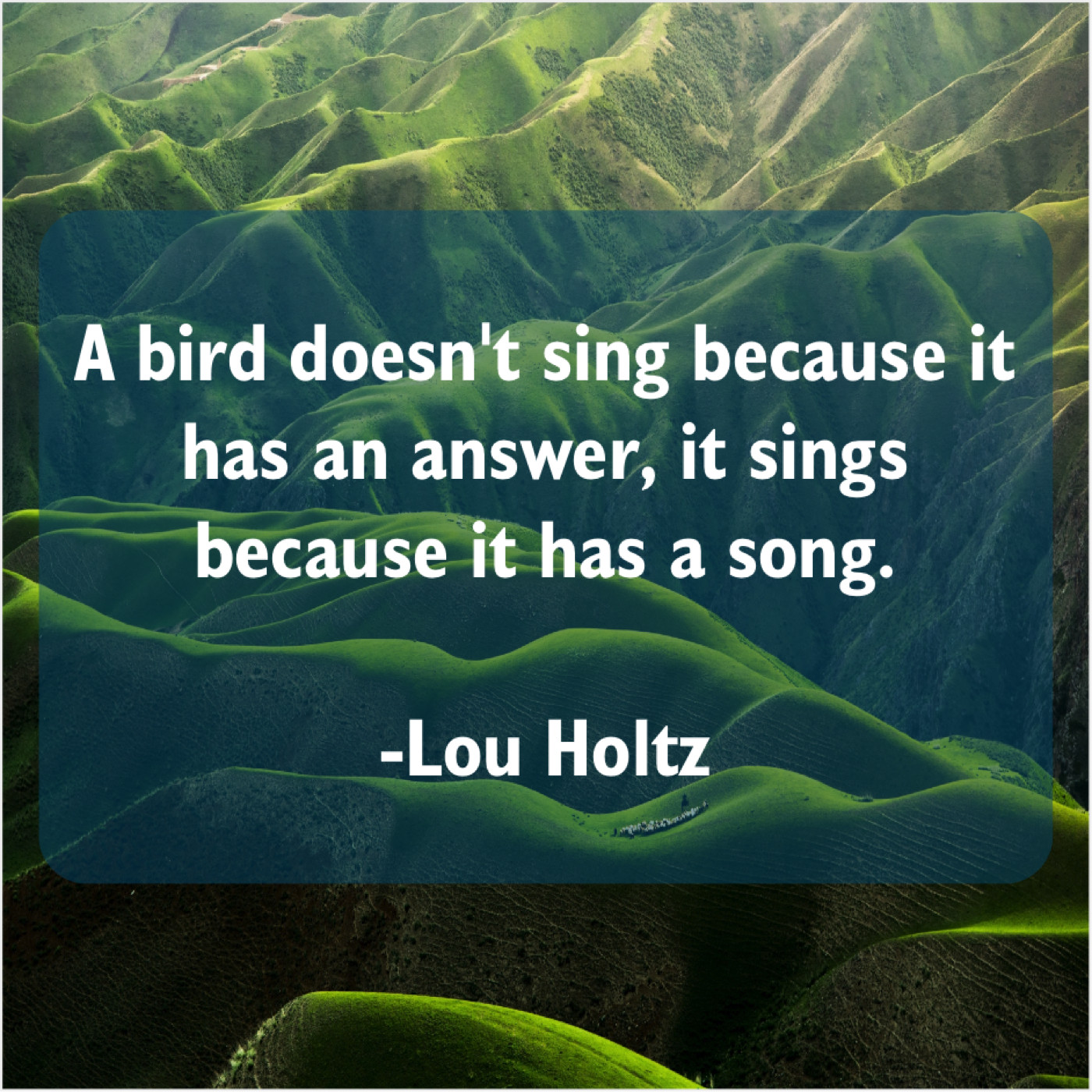 Lou Holtz Lou Holtz – A bird doesn’t sing because… January 13, 2019 admin “A bird doesn’t sing because it has an answer, it sings because it has a song.”-Lou Holtz