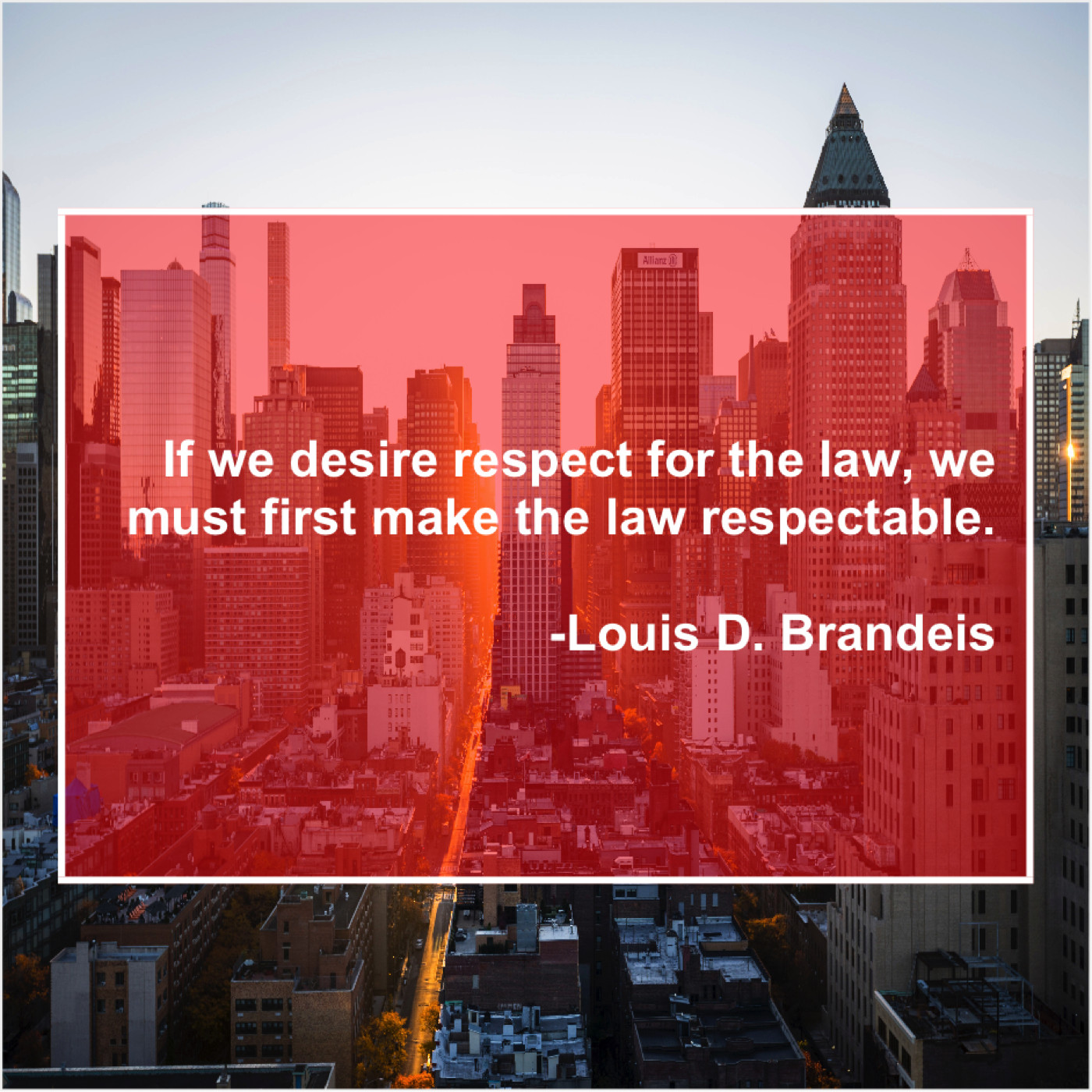 Louis D. Brandeis Louis D. Brandeis – If we desire respect for… December 8, 2018 admin “If we desire respect for the law, we must first make the law respectable.”-Louis D. Brandeis