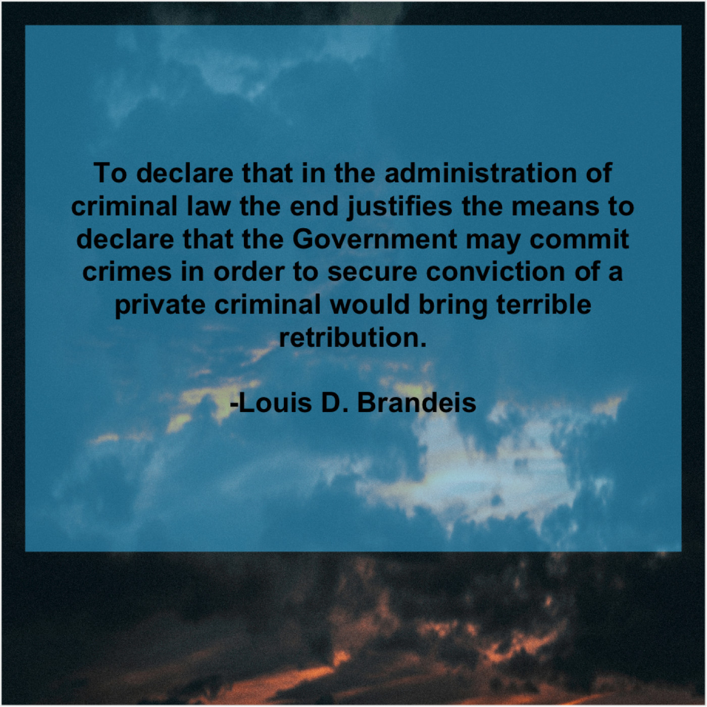 Louis D. Brandeis Louis D. Brandeis – To declare that in the… July 7, 2019 admin “To declare that in the administration of criminal law the end justifies the means to declare that the Government may commit crimes in order to secure conviction of a private criminal would bring terrible retribution.”-Louis D. Brandeis
