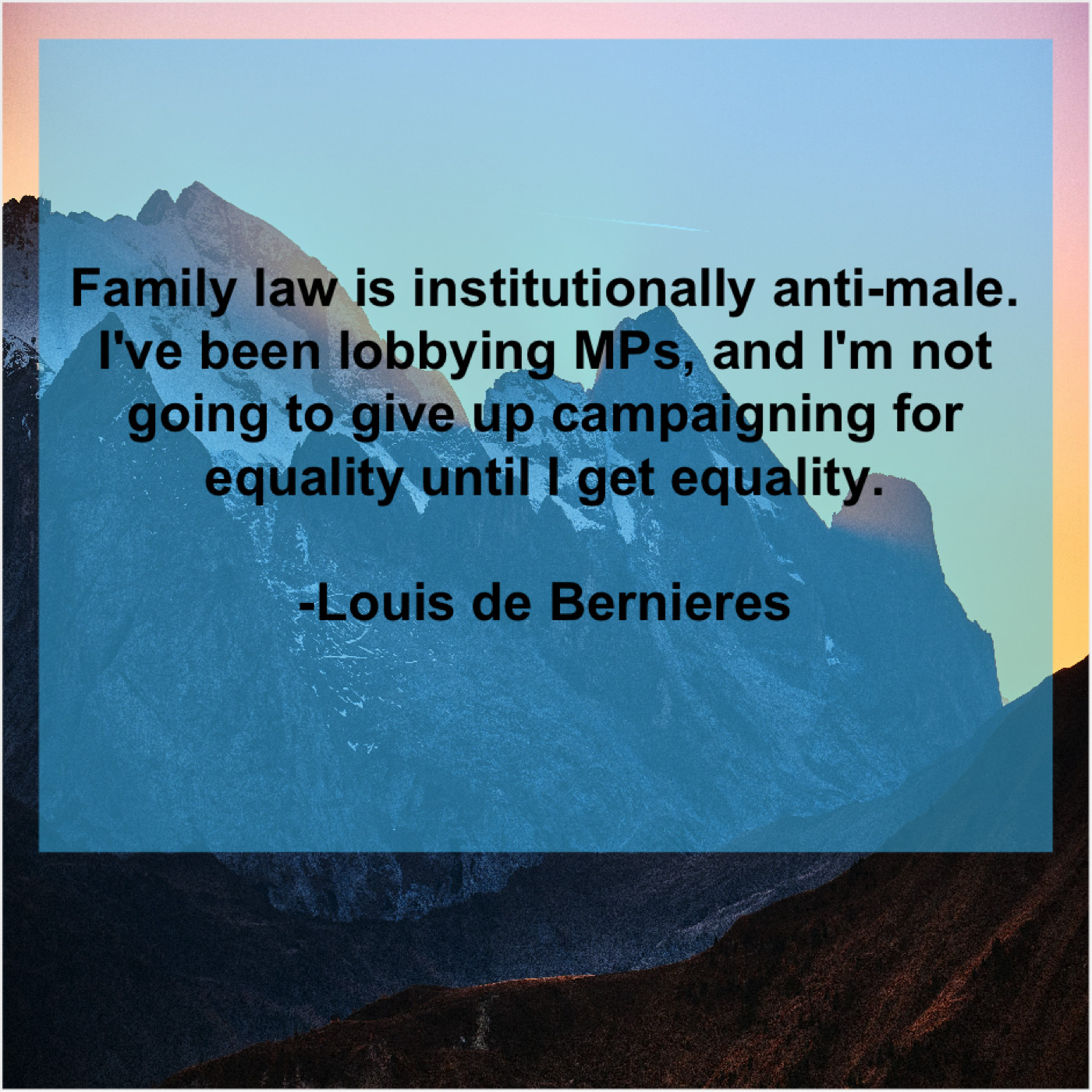 Louis de Bernieres Louis de Bernieres – Family law is institutionally anti… March 11, 2019 admin “Family law is institutionally anti-male. I’ve been lobbying MPs, and I’m not going to give up campaigning for equality until I get equality.”-Louis de Bernieres