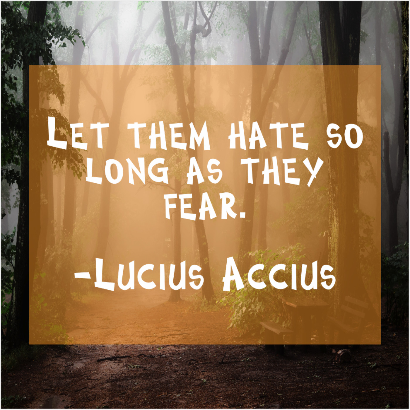 Lucius Accius Lucius Accius – Let them hate so long… August 13, 2019 admin “Let them hate so long as they fear.”-Lucius Accius