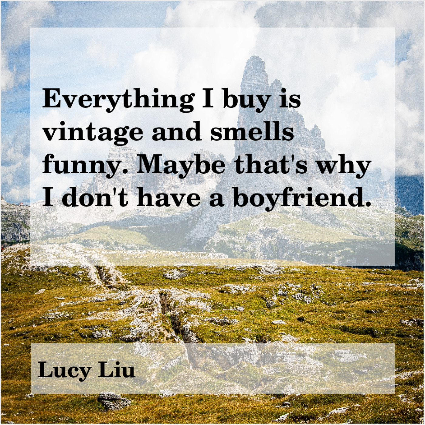 Lucy Liu Lucy Liu – Everything I buy is vintage… February 12, 2019 admin “Everything I buy is vintage and smells funny. Maybe that’s why I don’t have a boyfriend.”-Lucy Liu