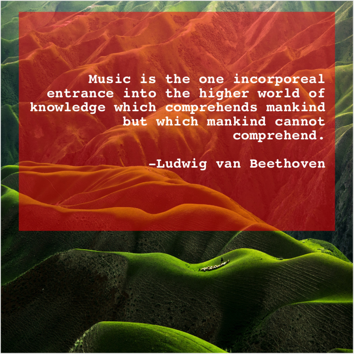 Ludwig van Beethoven Ludwig van Beethoven – Music is the one incorporeal… March 30, 2019 admin “Music is the one incorporeal entrance into the higher world of knowledge which comprehends mankind but which mankind cannot comprehend.”-Ludwig van Beethoven