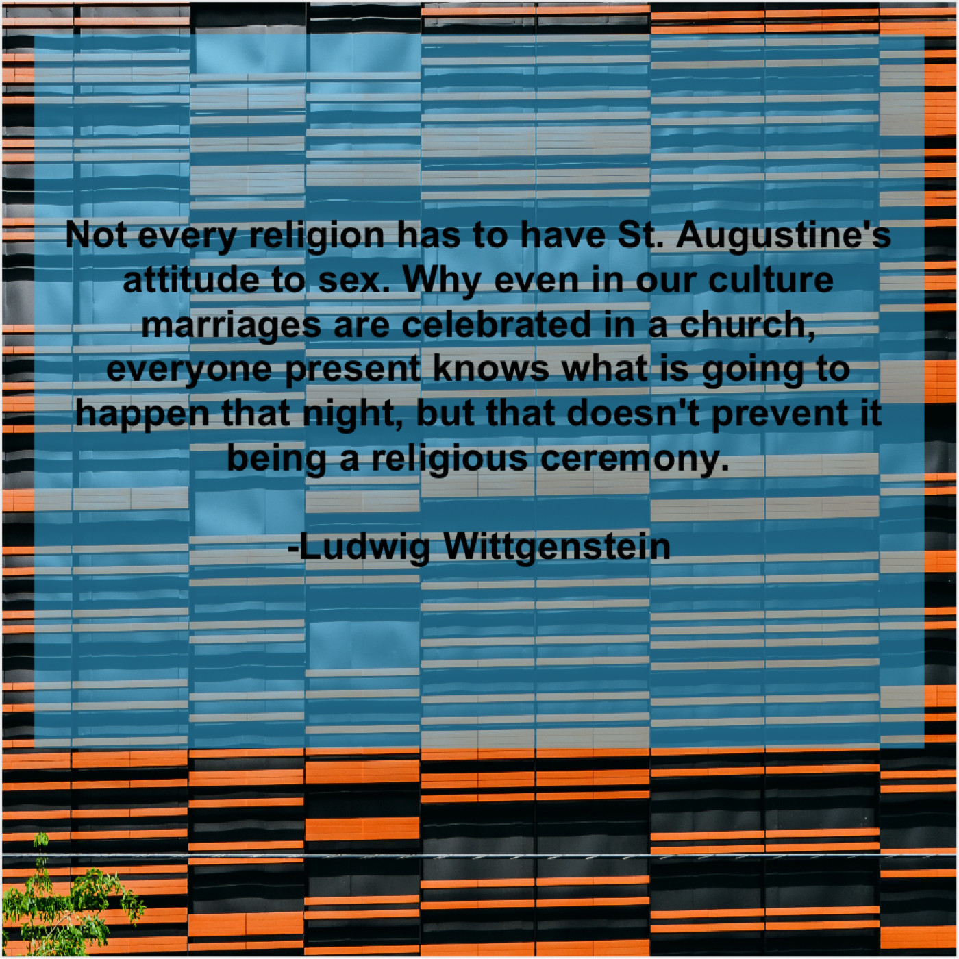 “Not every religion has to have St. Augustine’s attitude to sex. Why even in our culture marriages are celebrated in a church, everyone present knows what is going to happen that night, but that doesn’t prevent it being a religious ceremony.”