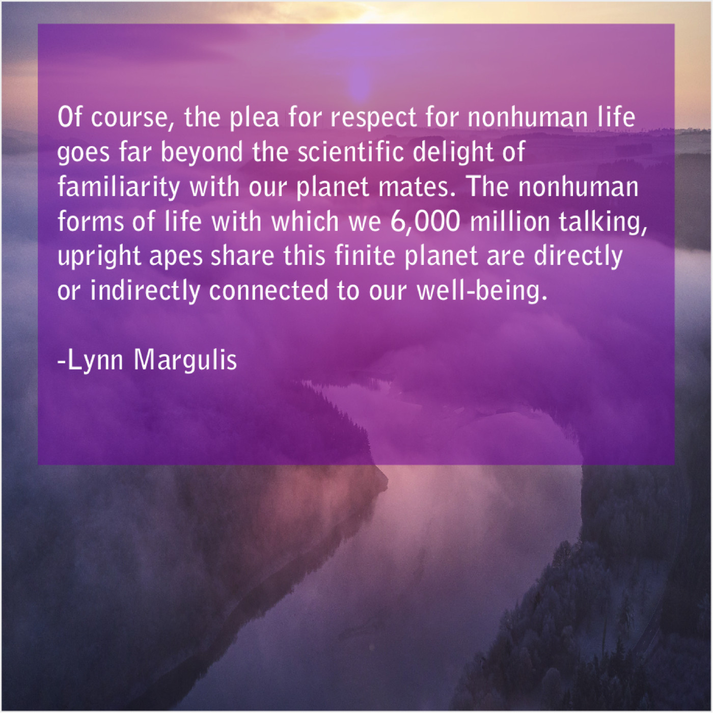 “Of course, the plea for respect for nonhuman life goes far beyond the scientific delight of familiarity with our planet mates. The nonhuman forms of life with which we 6,000 million talking, upright apes share this finite planet are directly or indirectly connected to our well-being.”