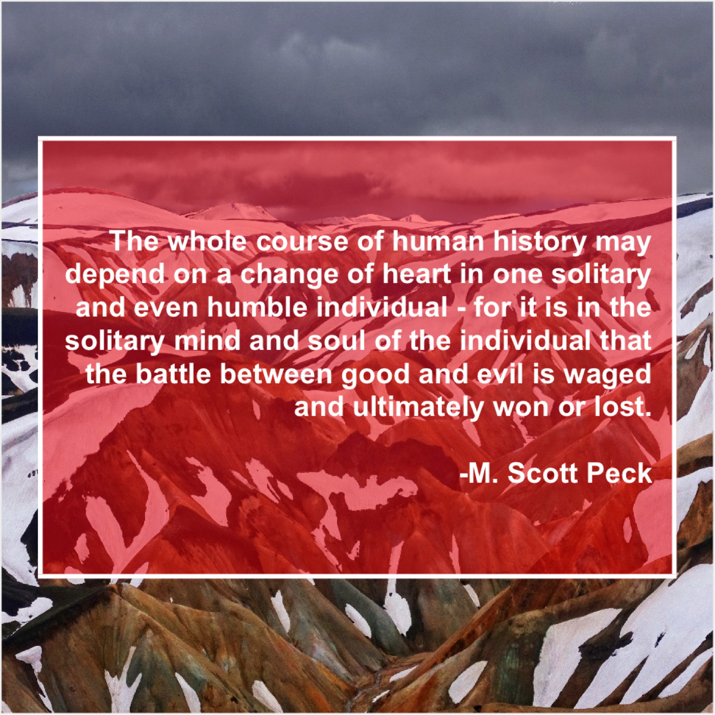 “The whole course of human history may depend on a change of heart in one solitary and even humble individual – for it is in the solitary mind and soul of the individual that the battle between good and evil is waged and ultimately won or lost.”