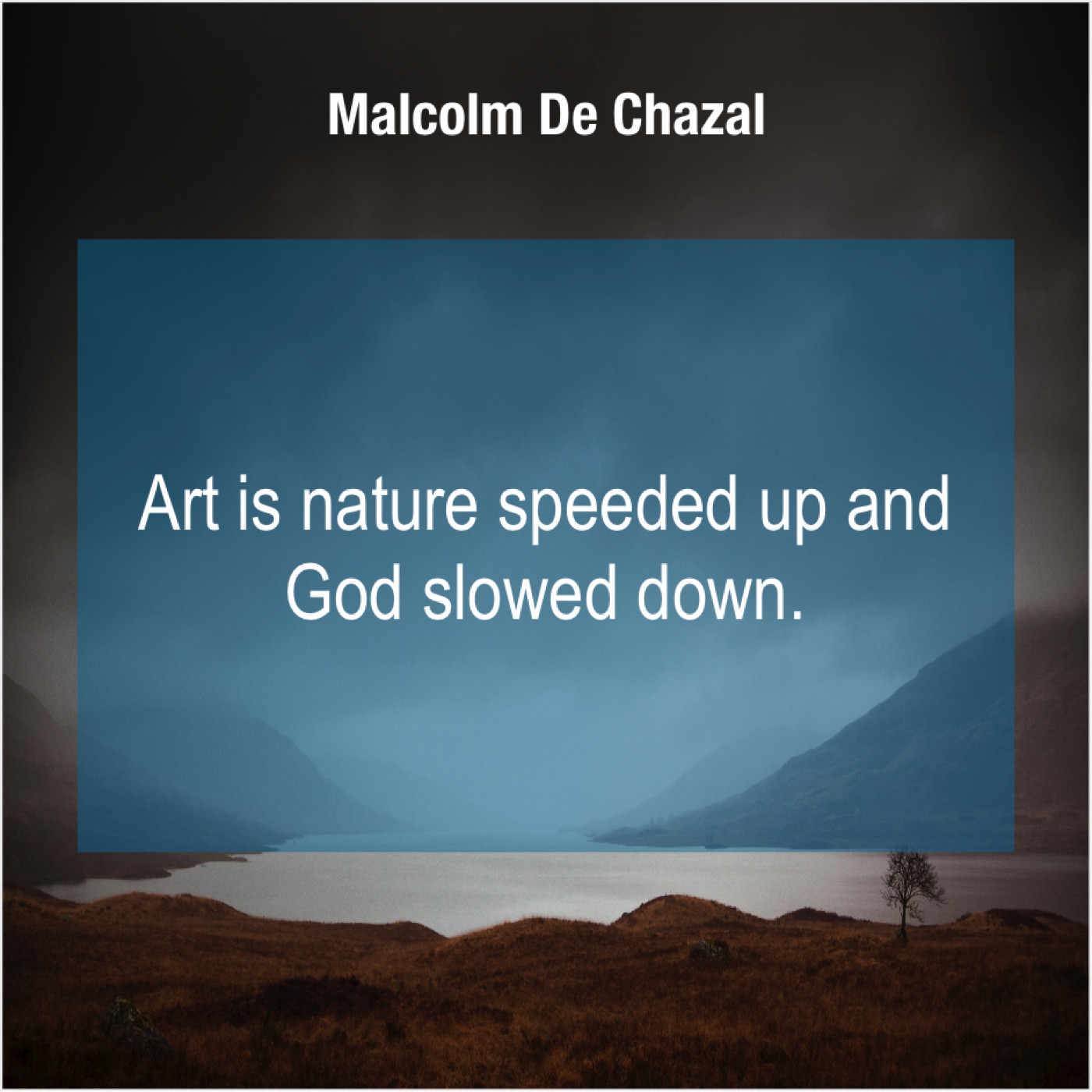Malcolm De Chazal Malcolm De Chazal – Art is nature speeded up… March 28, 2019 admin “Art is nature speeded up and God slowed down.”-Malcolm De Chazal